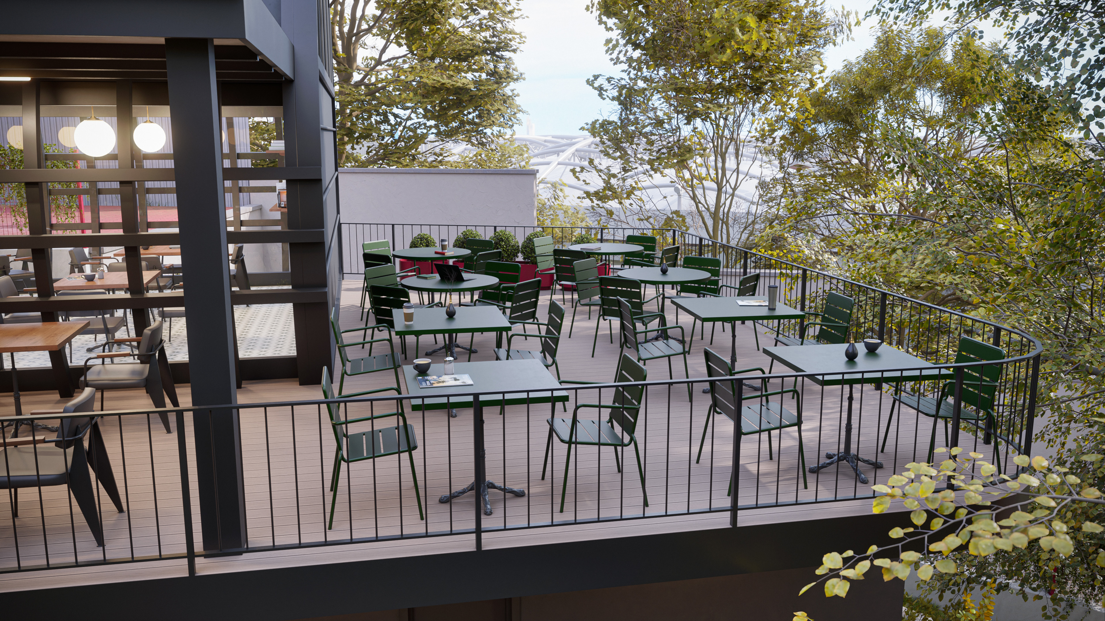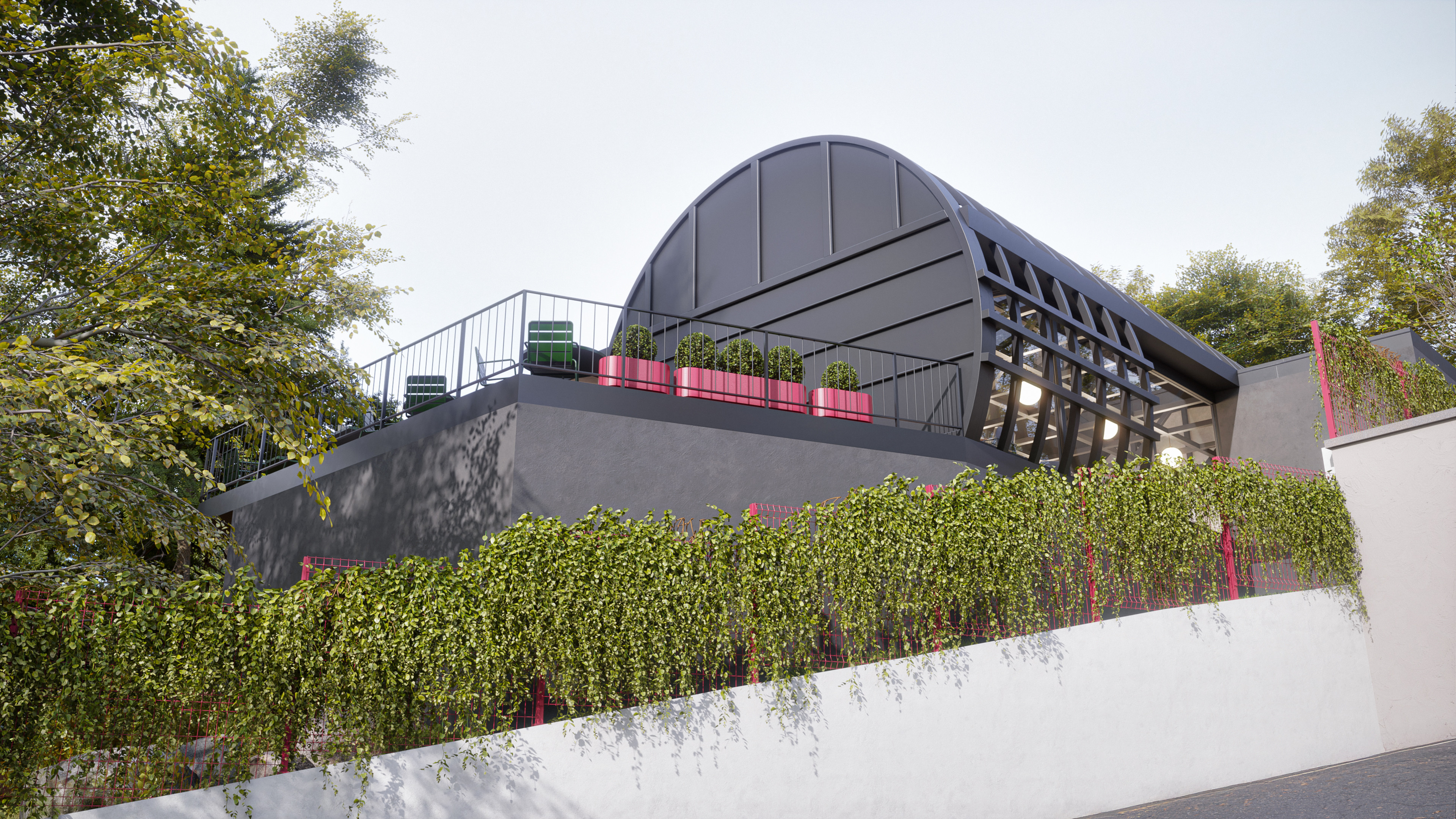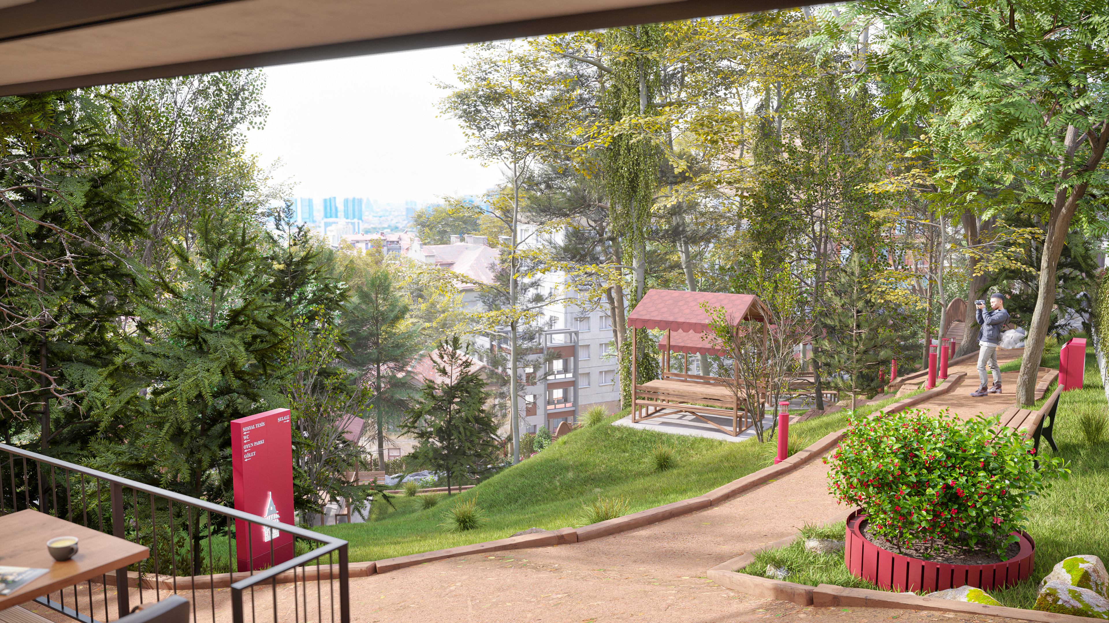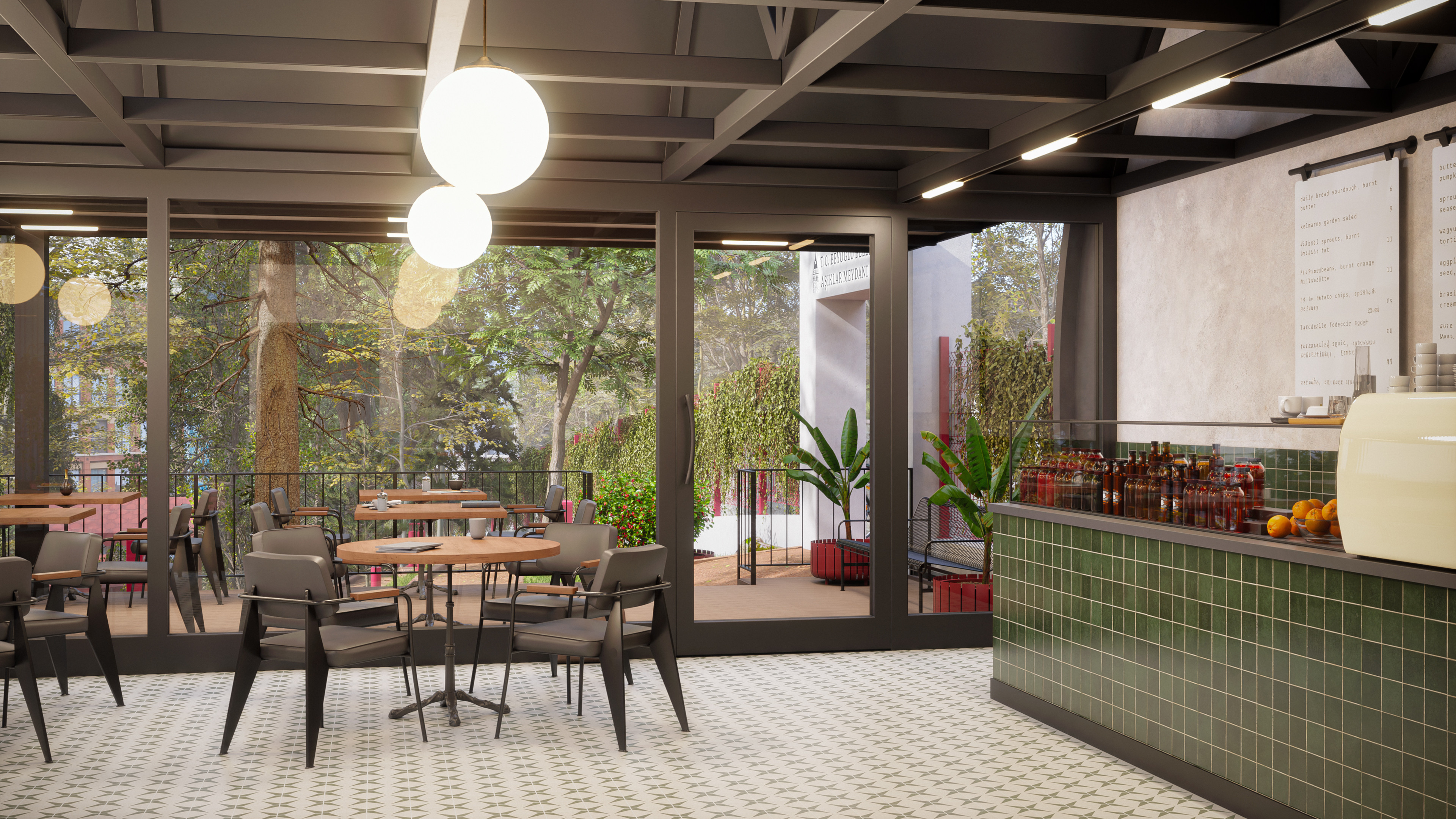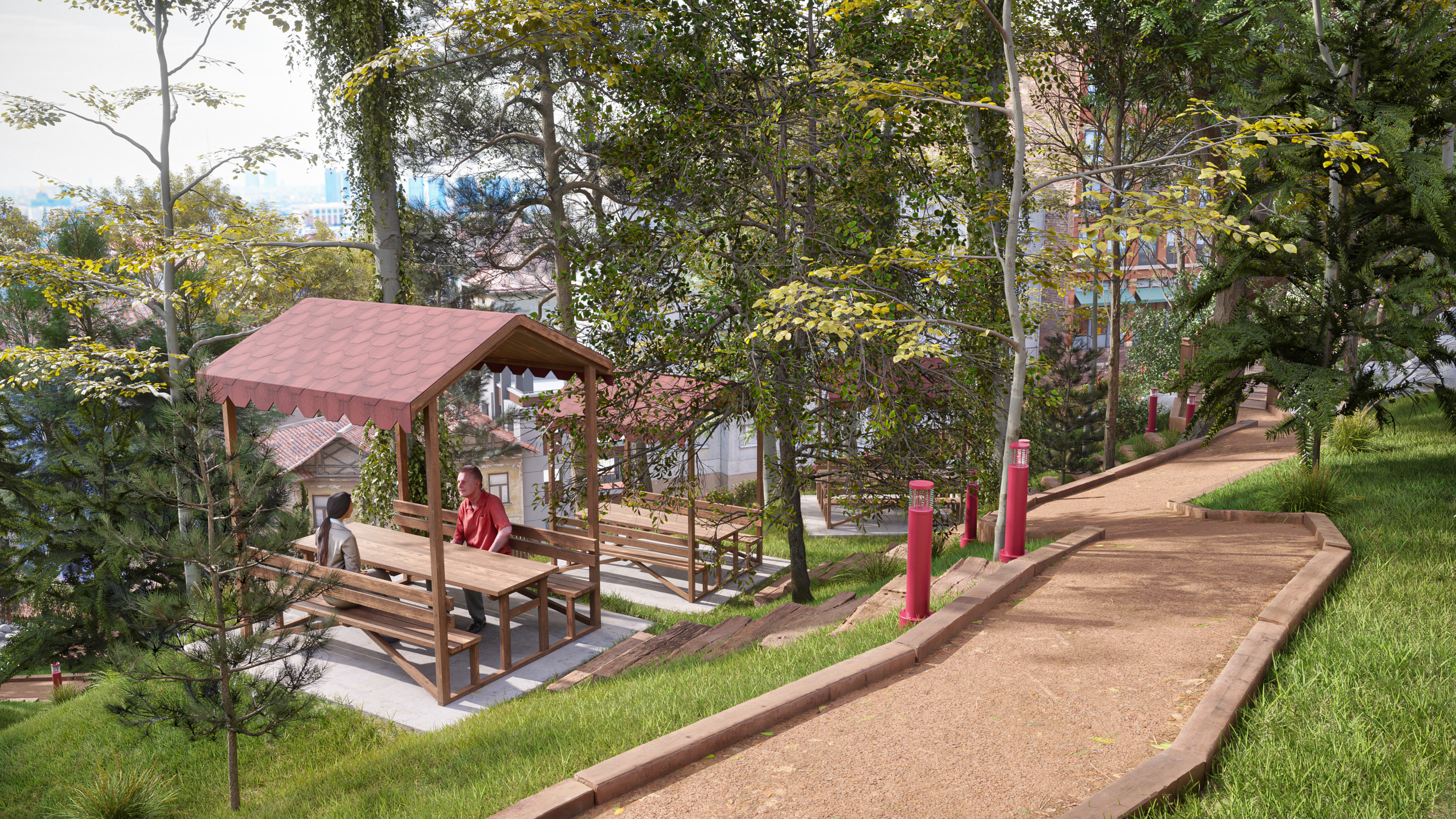 This design represents the third and final park concept created for the same site in the Beyoğlu district of Istanbul. Unlike the original version, which featured a historically inspired social facility and library, this alternative focuses on a more practical and cost-effective approach. The social facility and library were replaced with a smaller cafe, and the surrounding stone walls were redesigned as open wire fences to create a lighter, more transparent look.