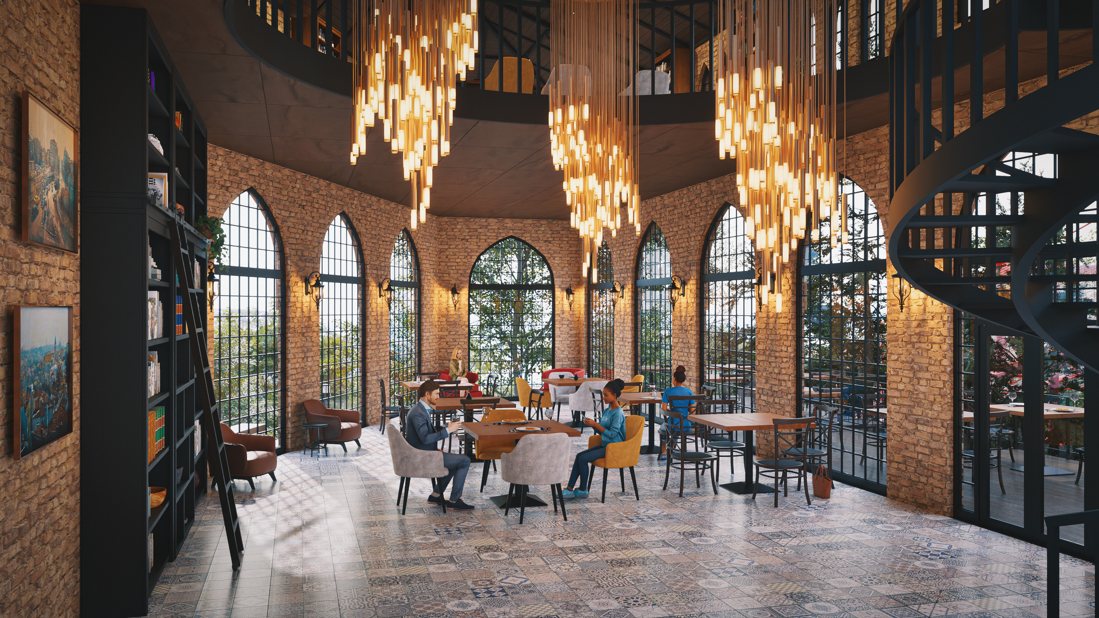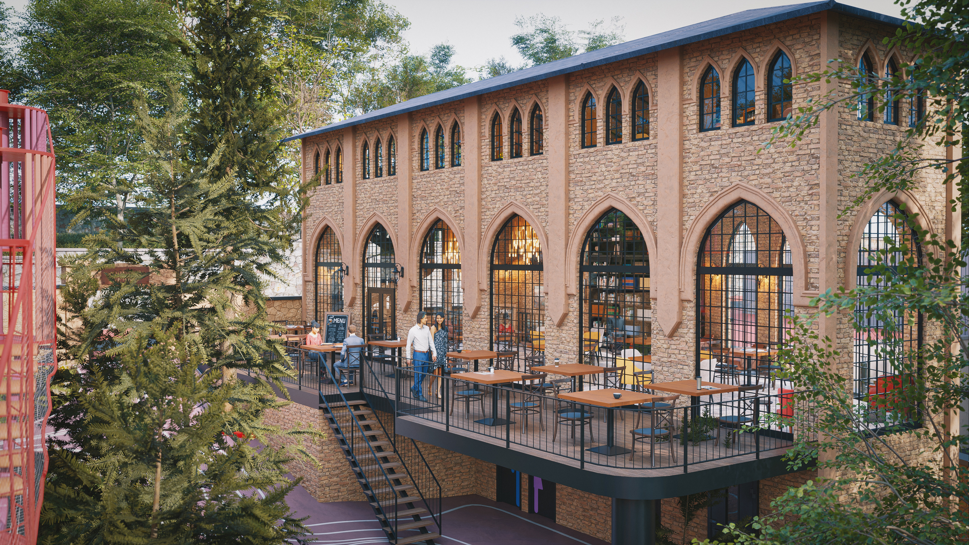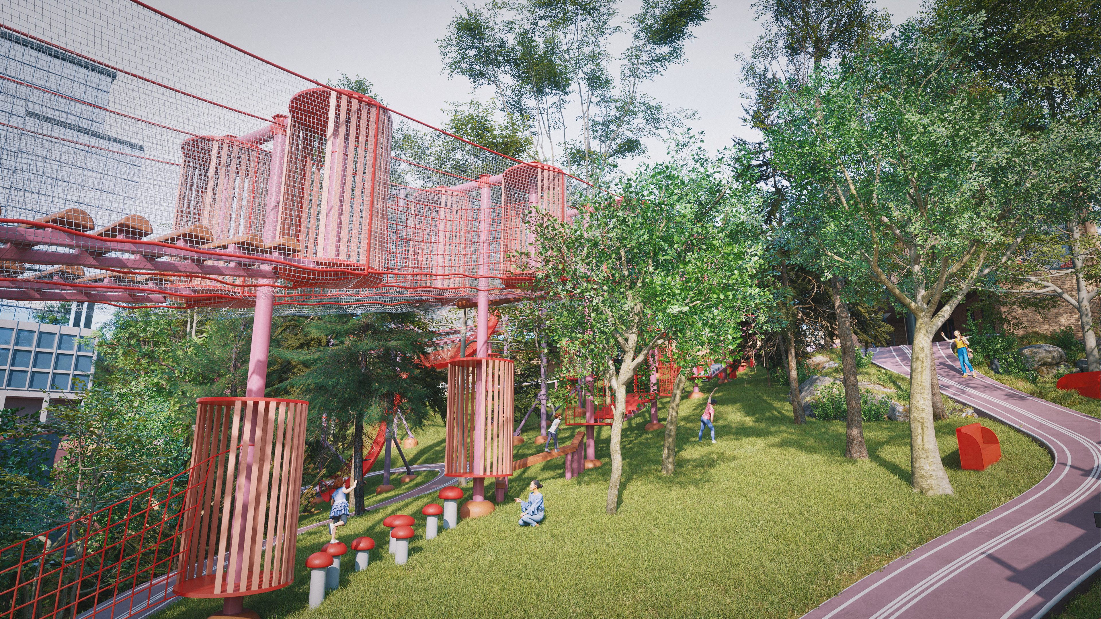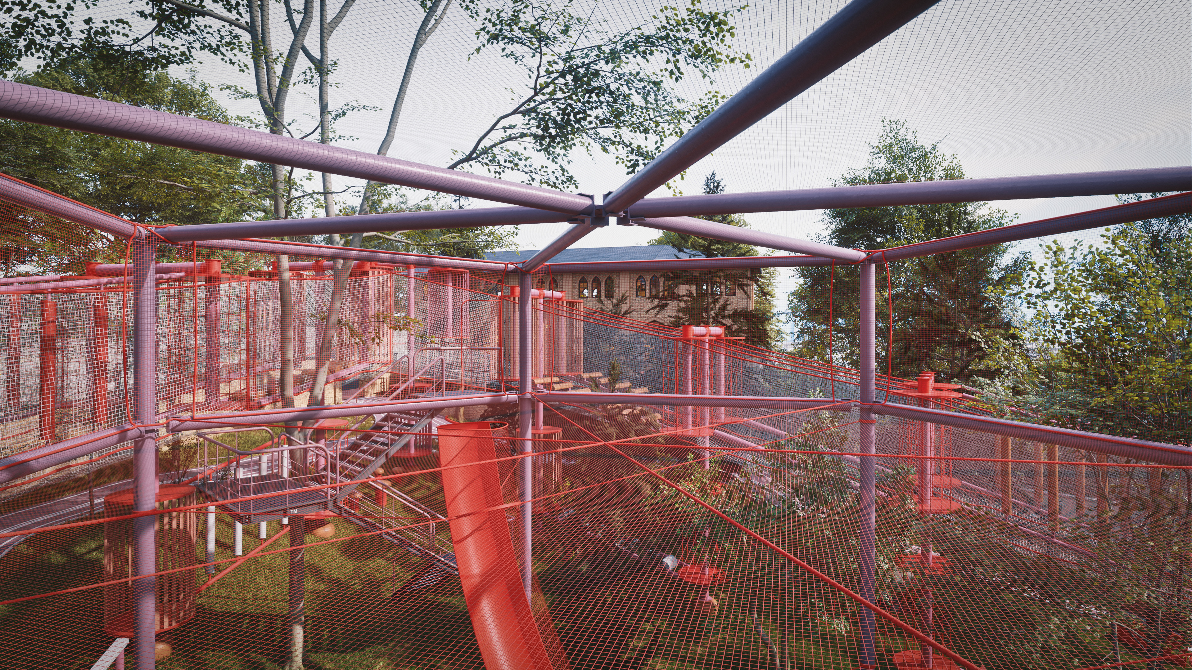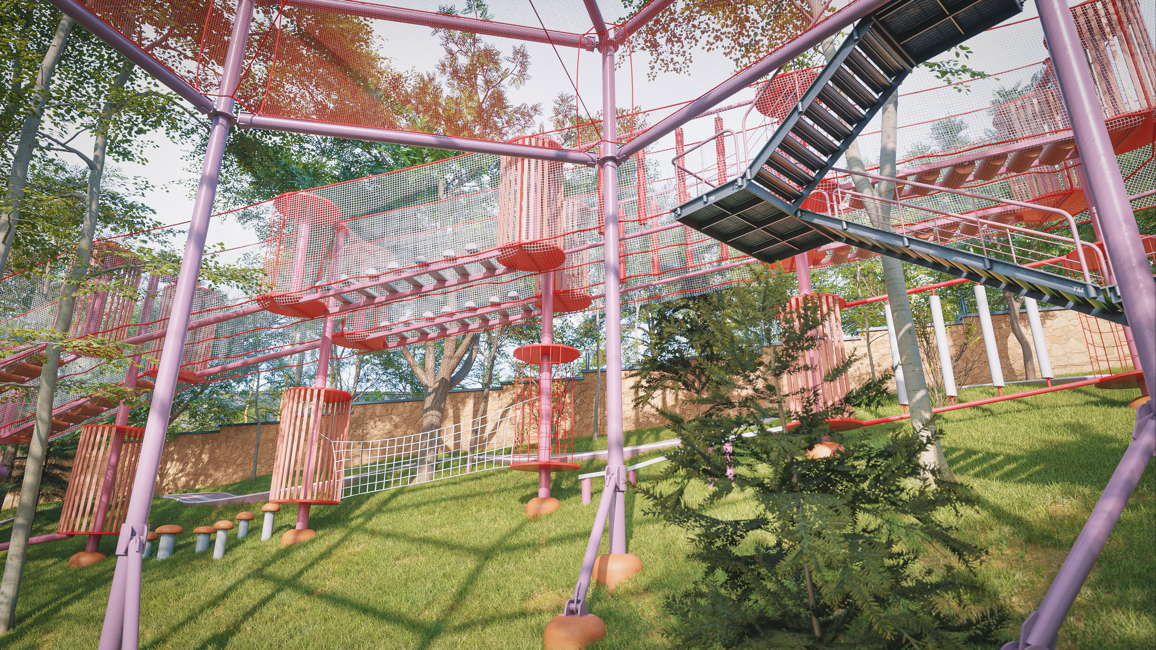 This project represents one of the alternative park concepts developed for the same site in the Beyoğlu district of Istanbul. It was designed as an adventure park that blends recreation and social interaction with nature, without cutting down trees or harming the existing landscape. The project includes a social facility, library, cafe, walking paths, resting areas, and a children’s adventure zone featuring a climbing wall designed as a stylized replica of the Galata Tower.