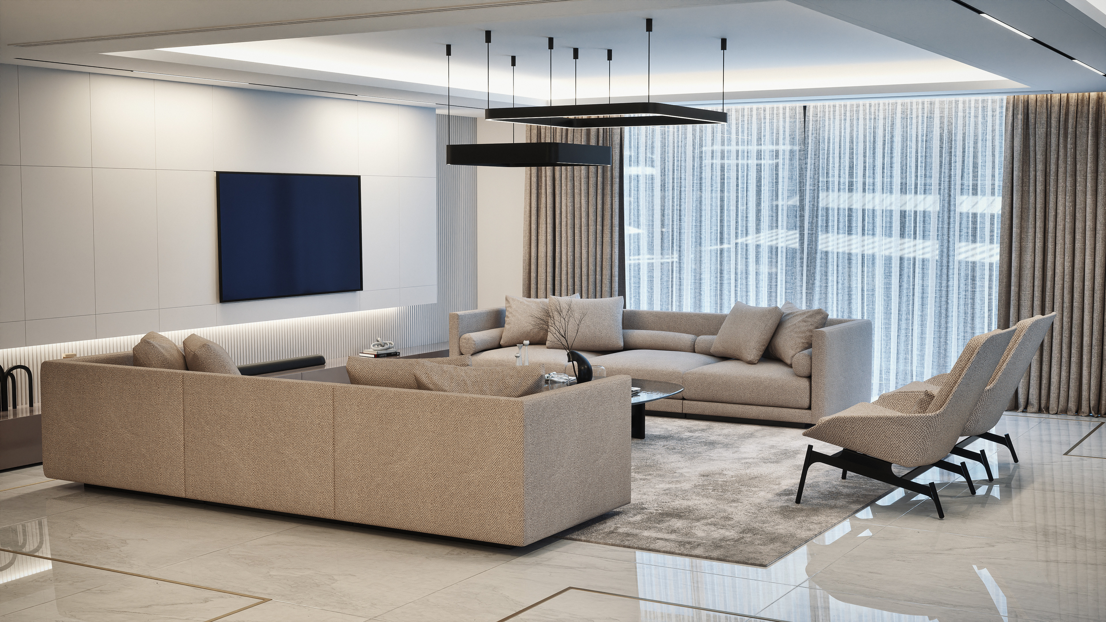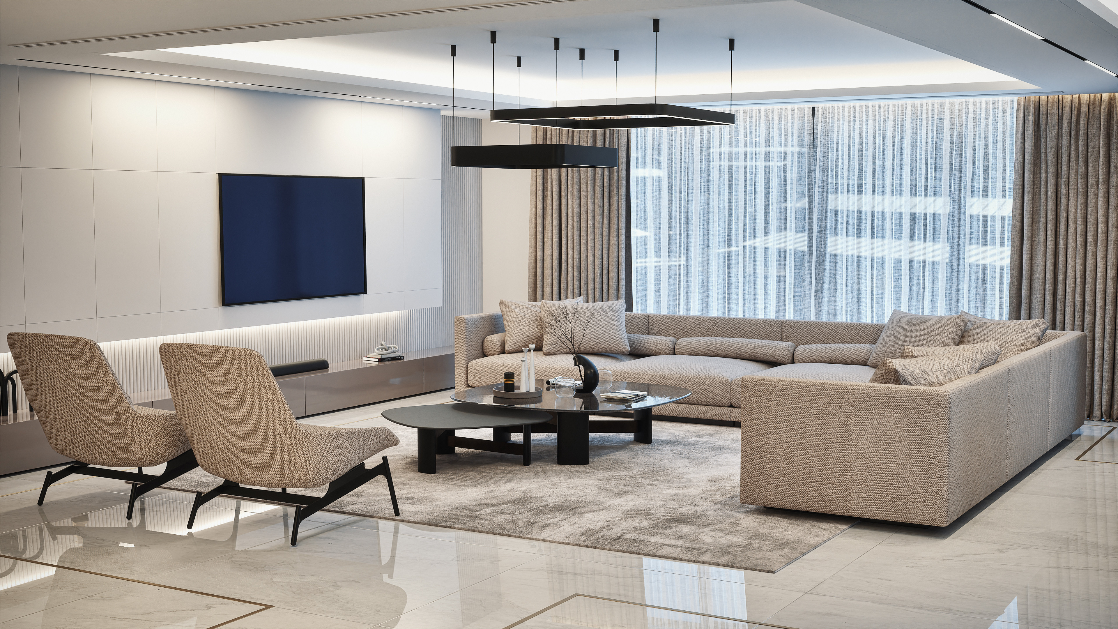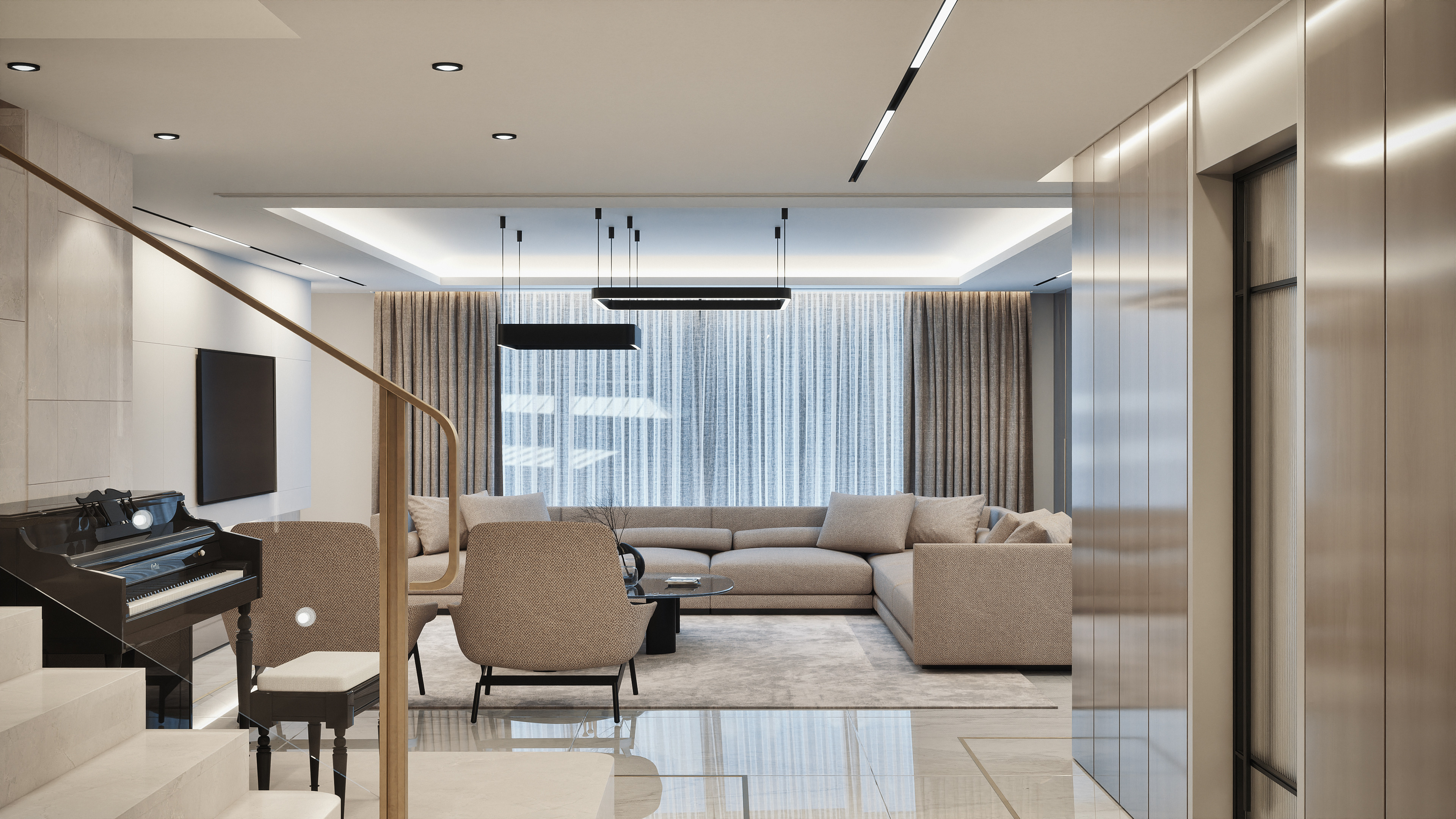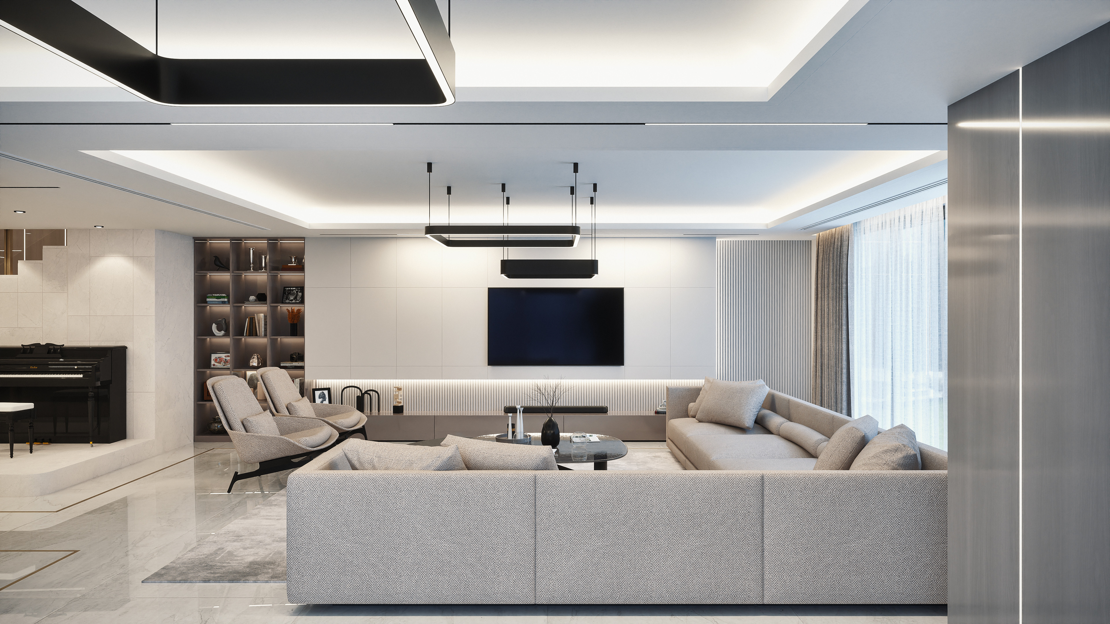 This living room is an alternative design created for the already completed Luxury Villa project. Some structural modifications were made to expand the space, and this version of the living room was ultimately chosen for implementation. The rest of the house was built according to the original Luxury Villa project.