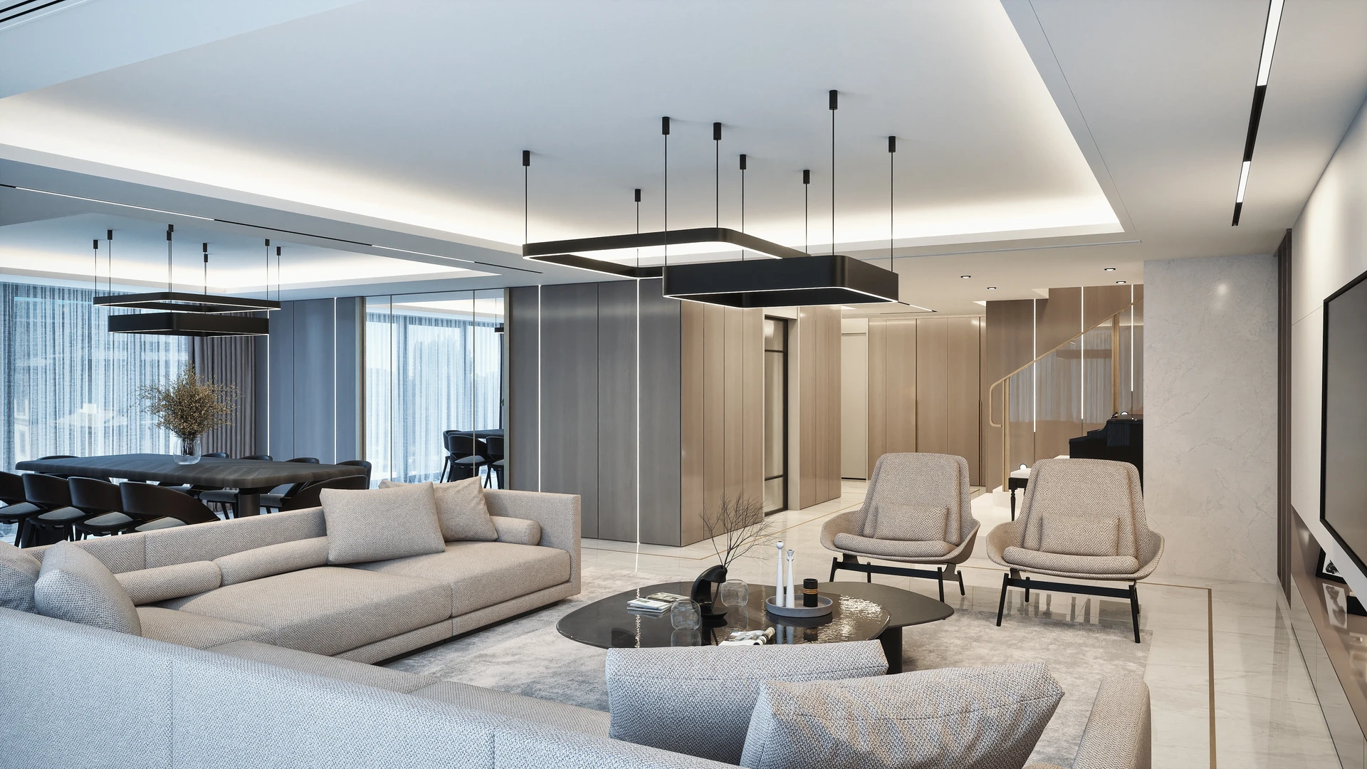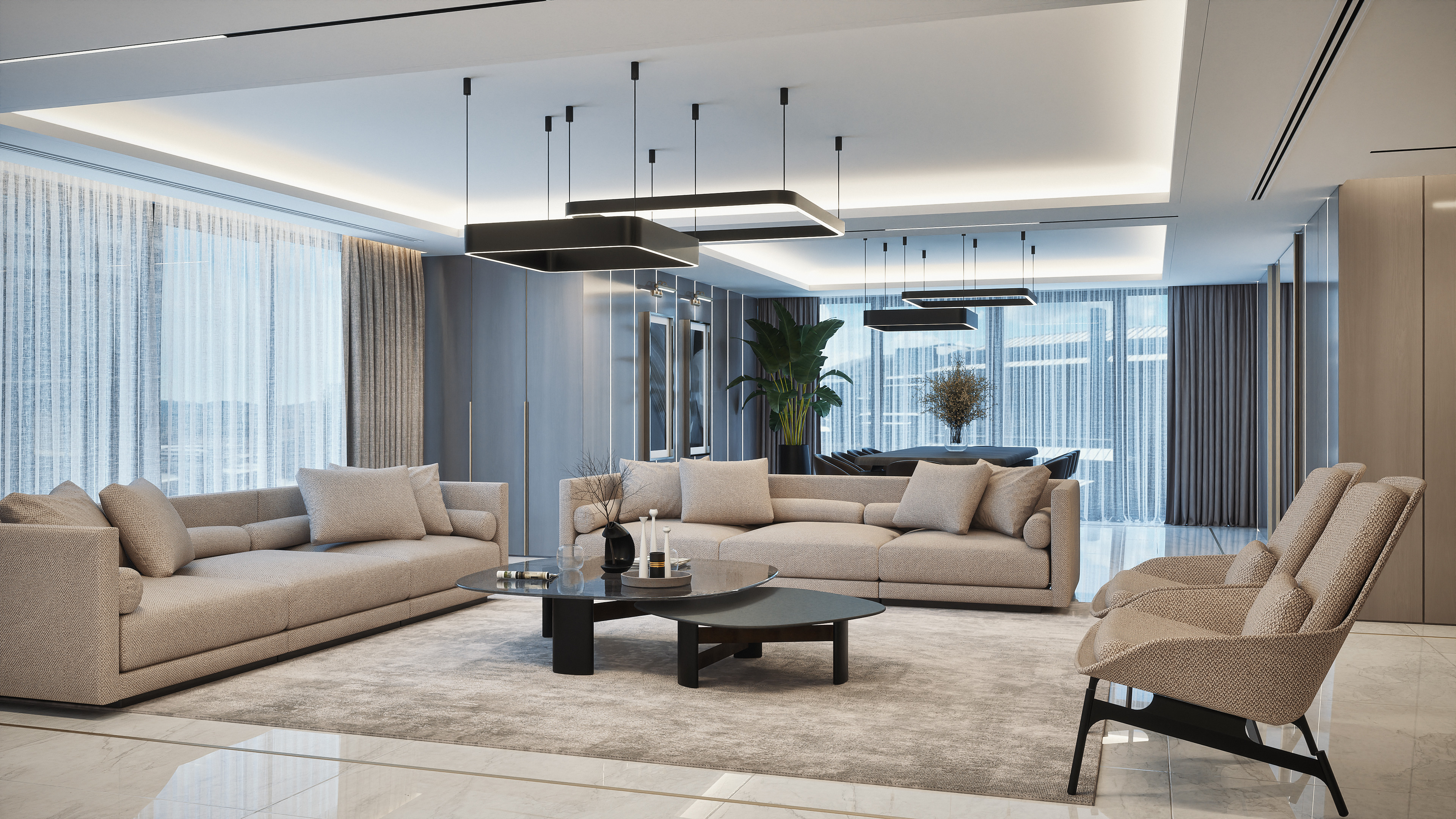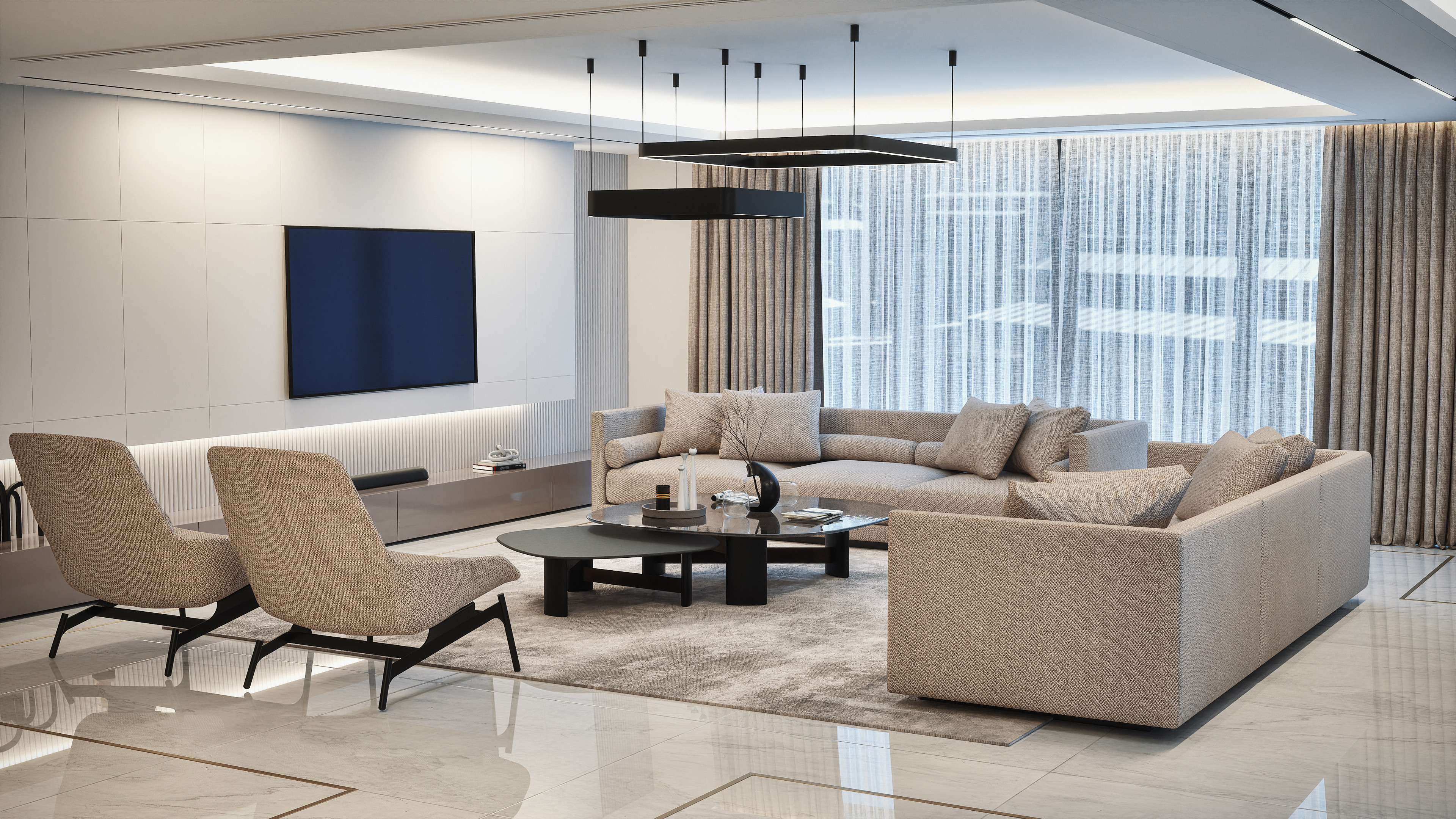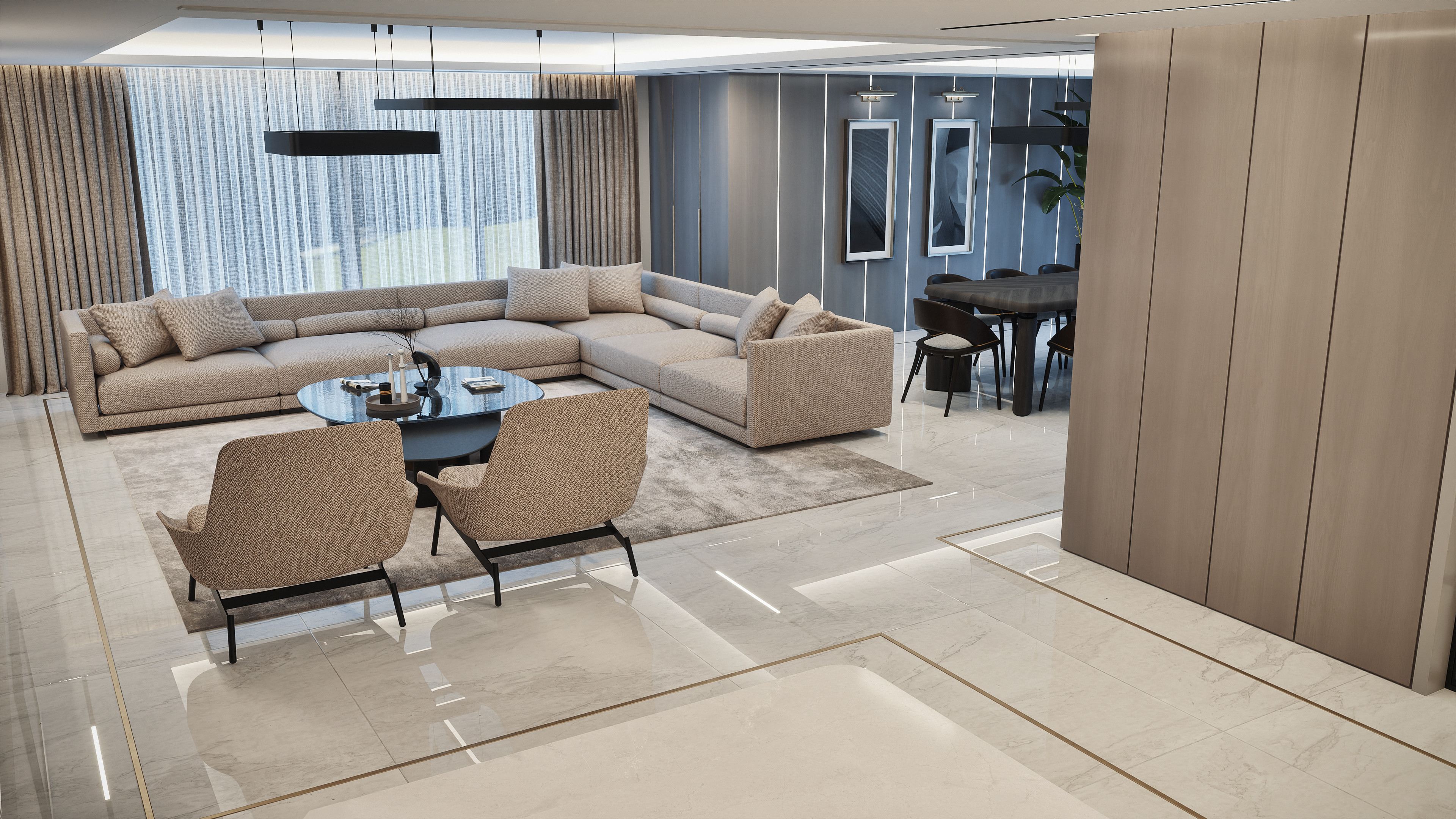 This living room is an alternative design created for the already completed Luxury Villa project. Some structural modifications were made to expand the space, and this version of the living room was ultimately chosen for implementation. The rest of the house was built according to the original Luxury Villa project.