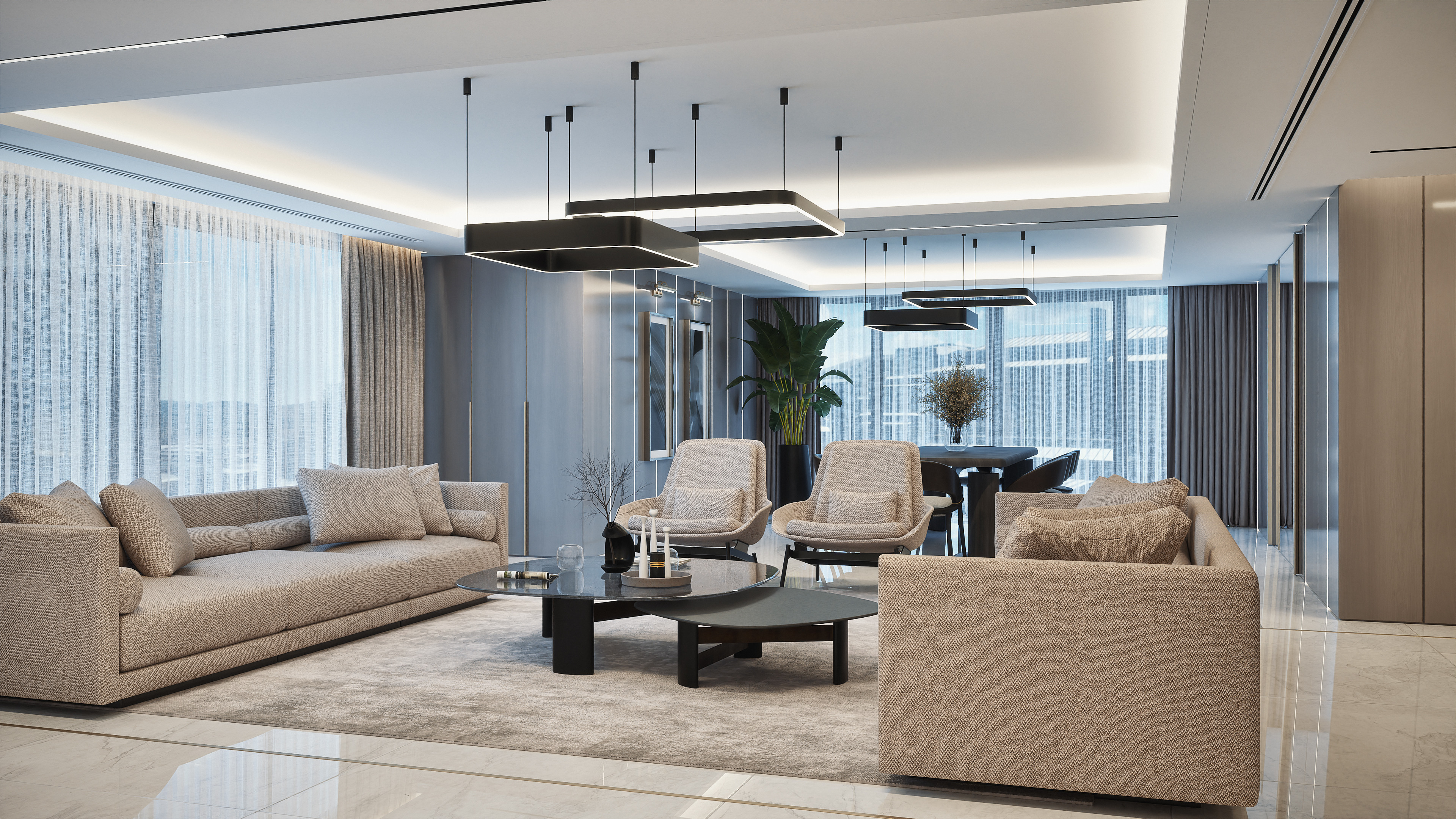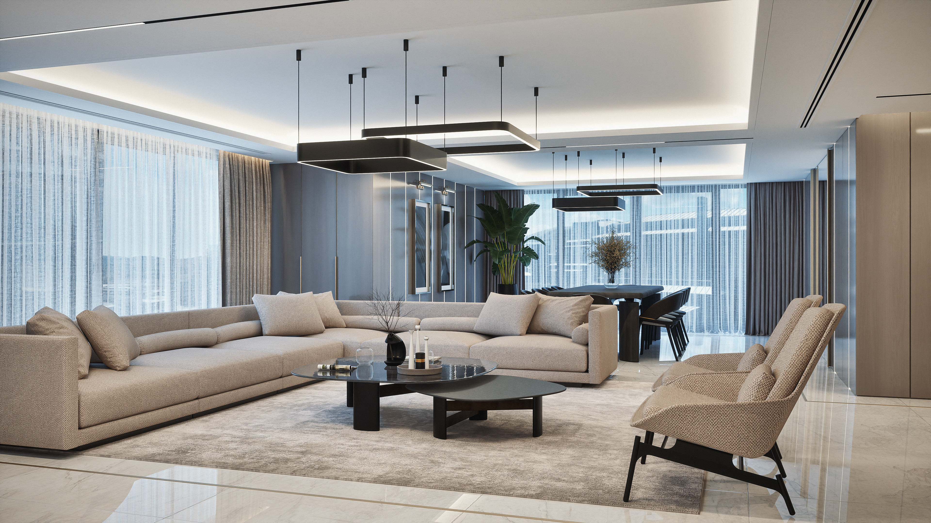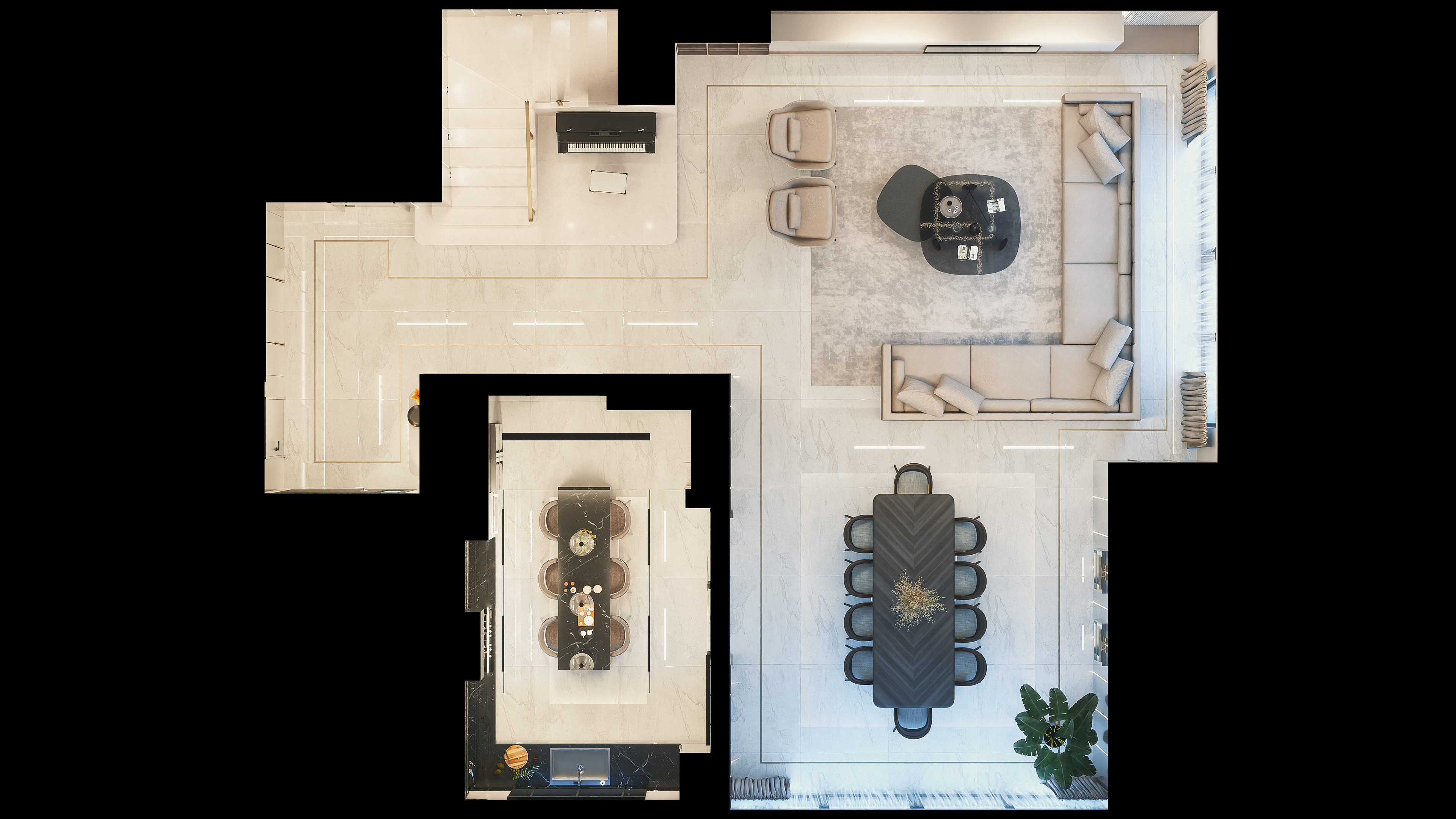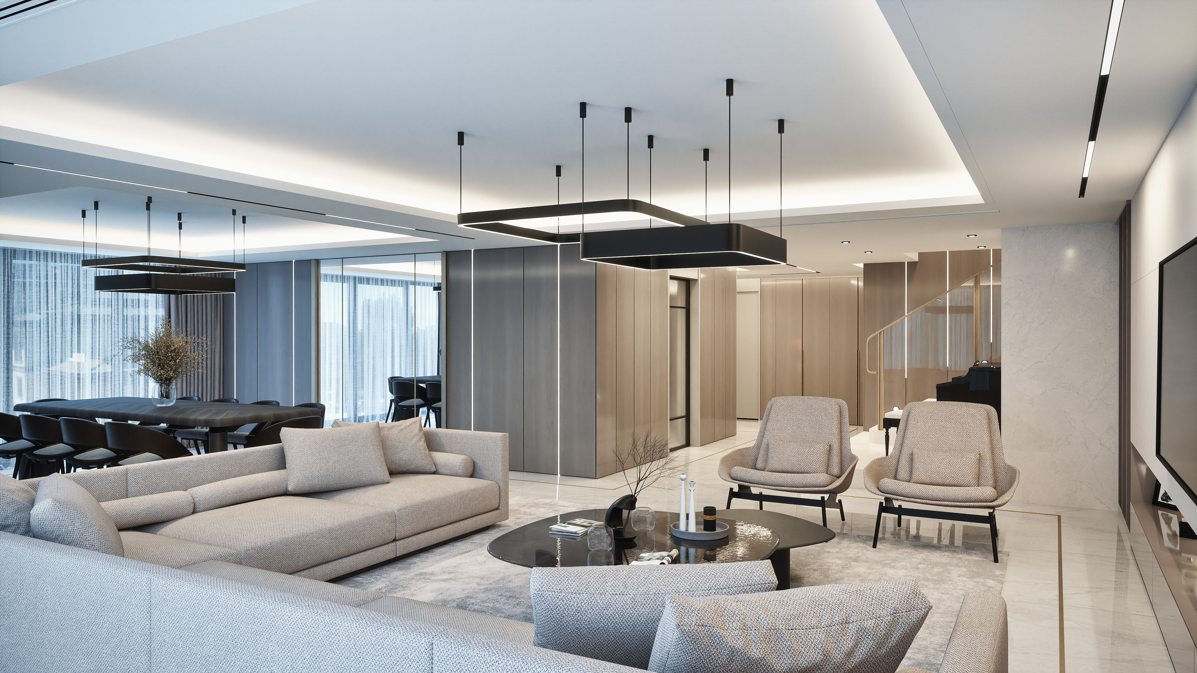 This living room is an alternative design created for the already completed Luxury Villa project. Some structural modifications were made to expand the space, and this version of the living room was ultimately chosen for implementation. The rest of the house was built according to the original Luxury Villa project.