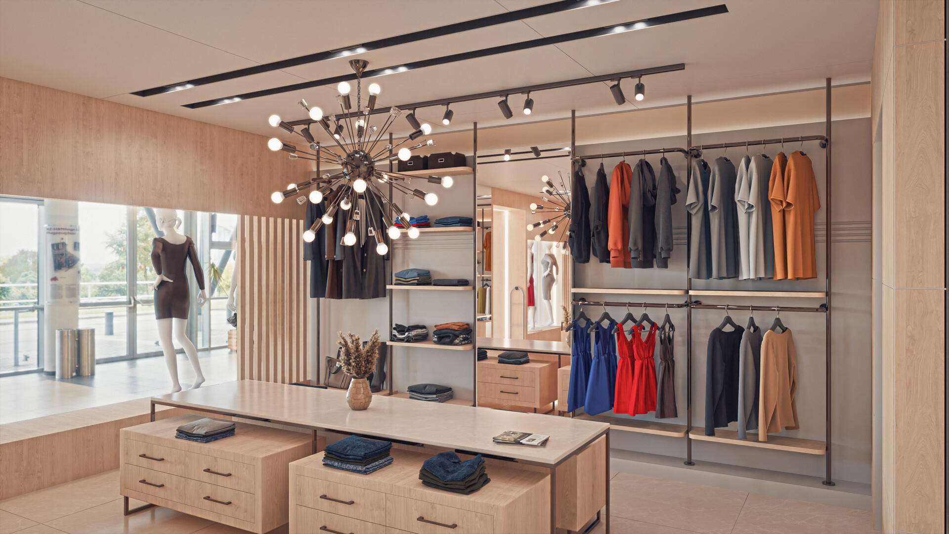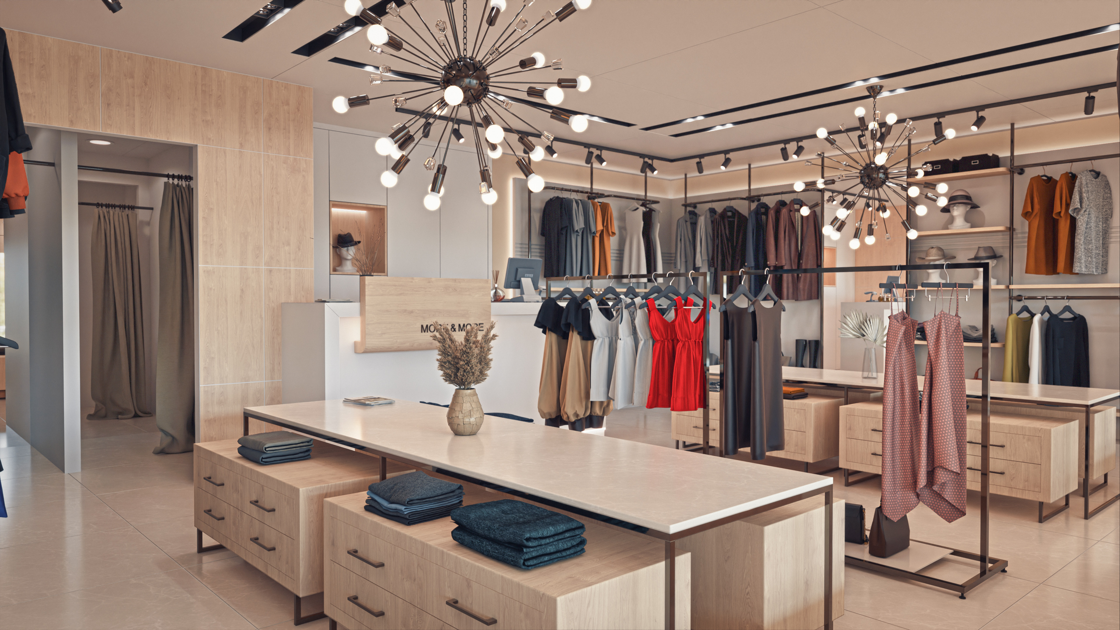 This project was designed for one of the retail stores of a fashion brand. The space includes storage, fitting rooms, and a stylish display area that together create a comfortable and elegant shopping experience. Warm lighting, soft colors, and natural materials were used to highlight the clothing and give the interior a modern yet inviting feel.