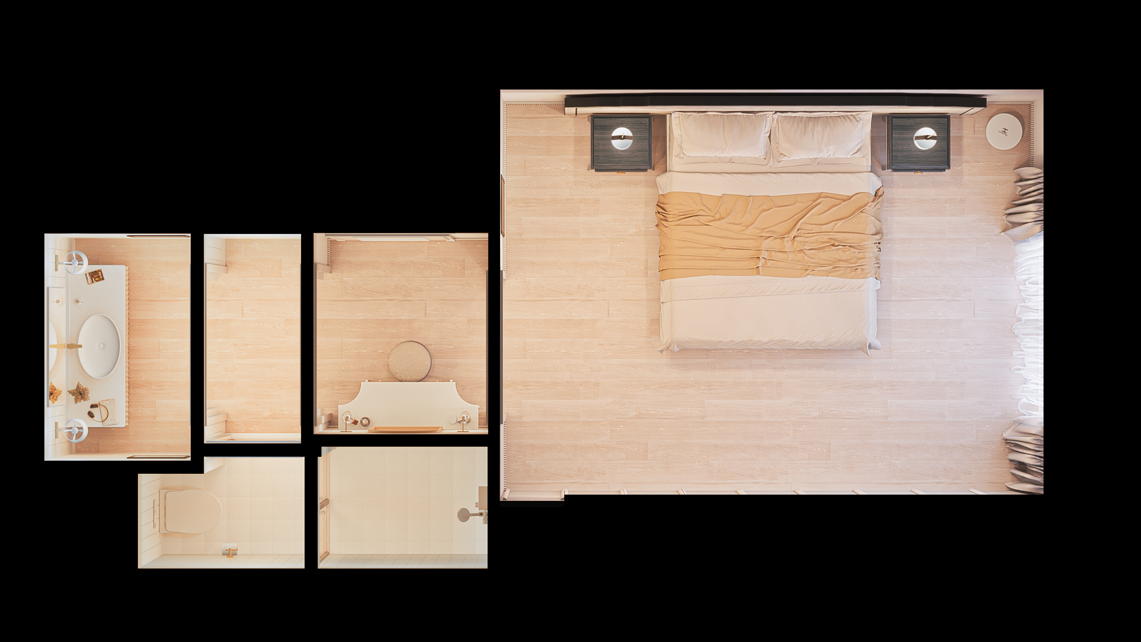 A visualization project I created for the renovation of the living room, bedroom, and bathrooms in an apartment.