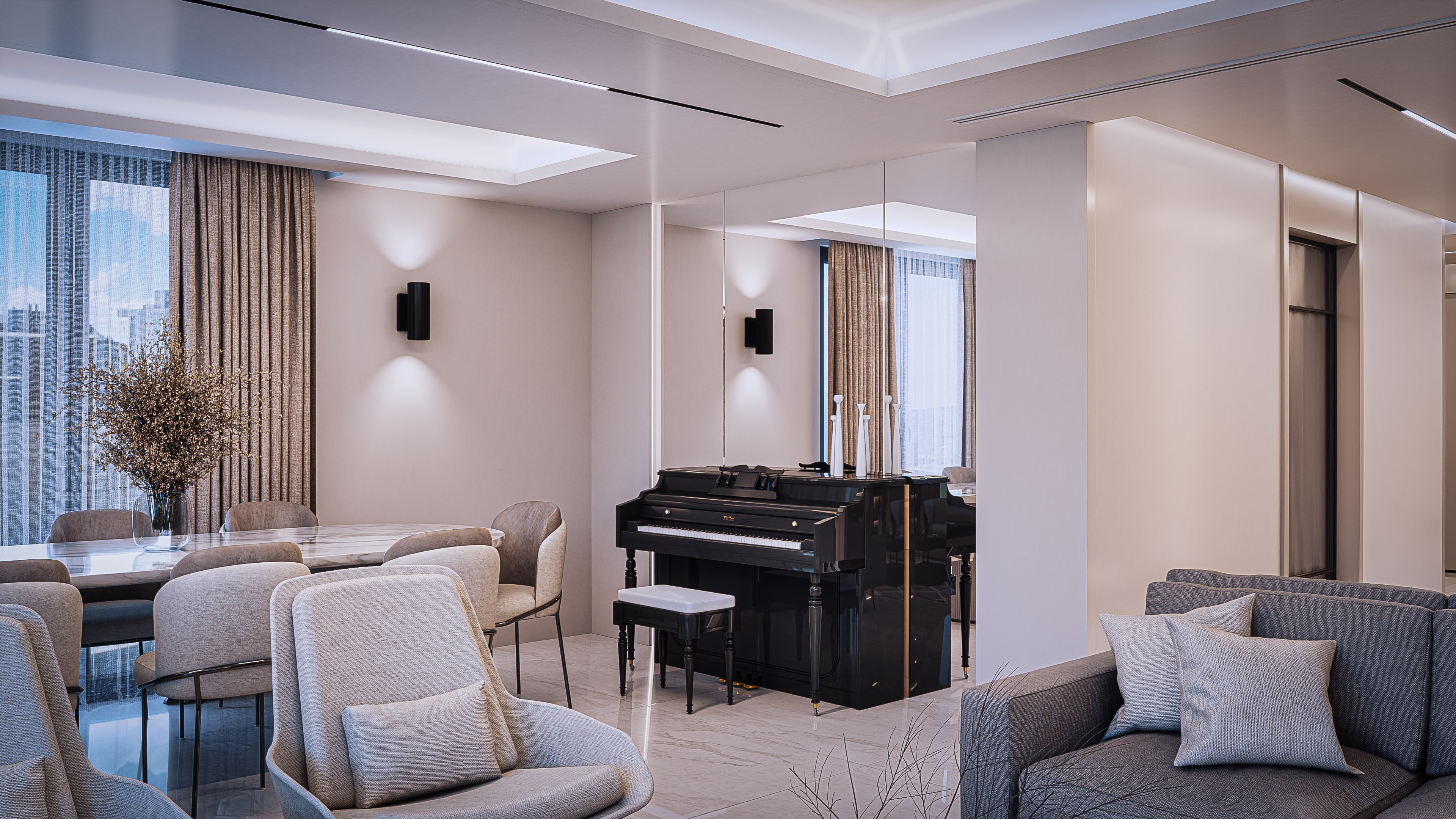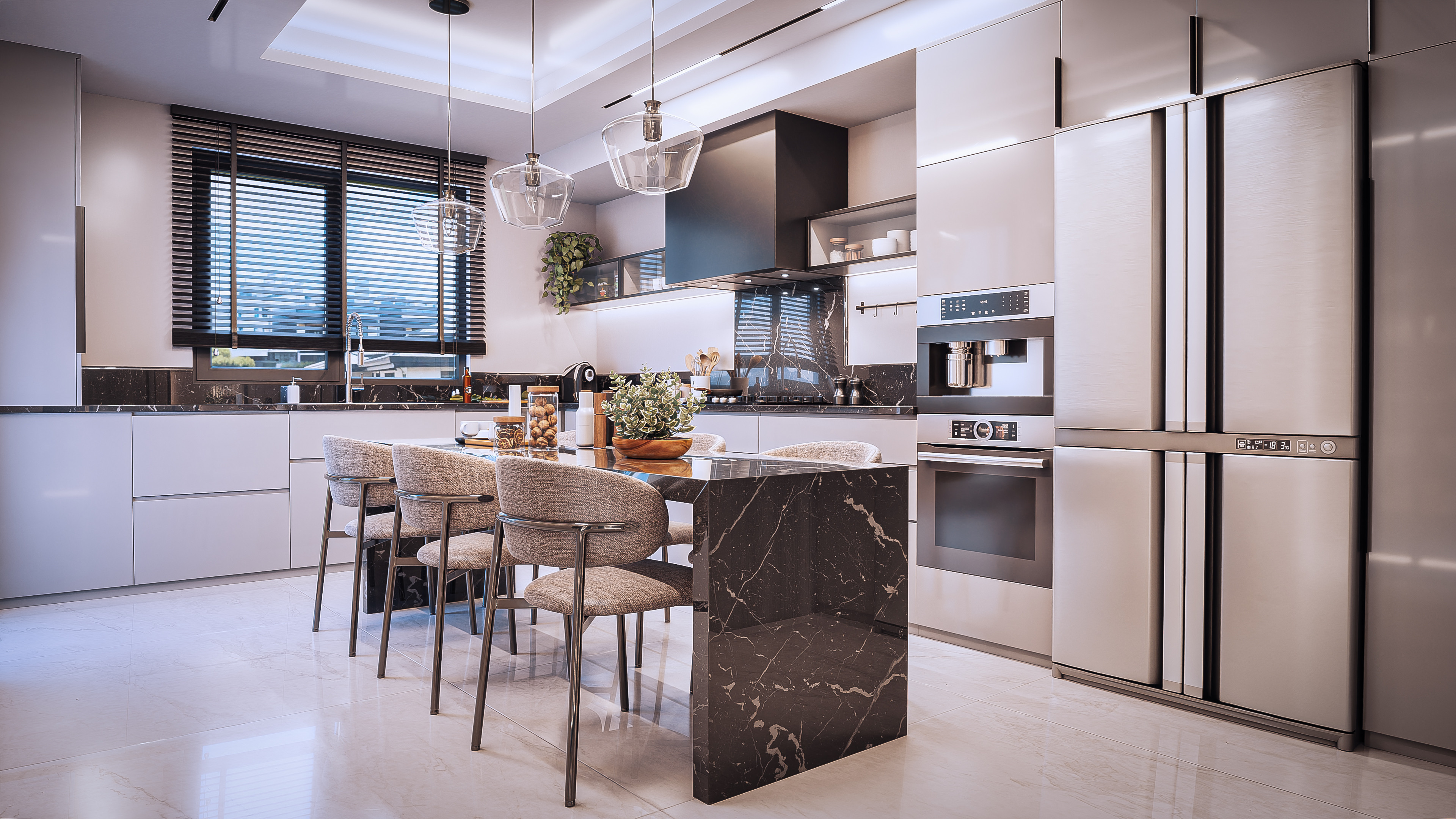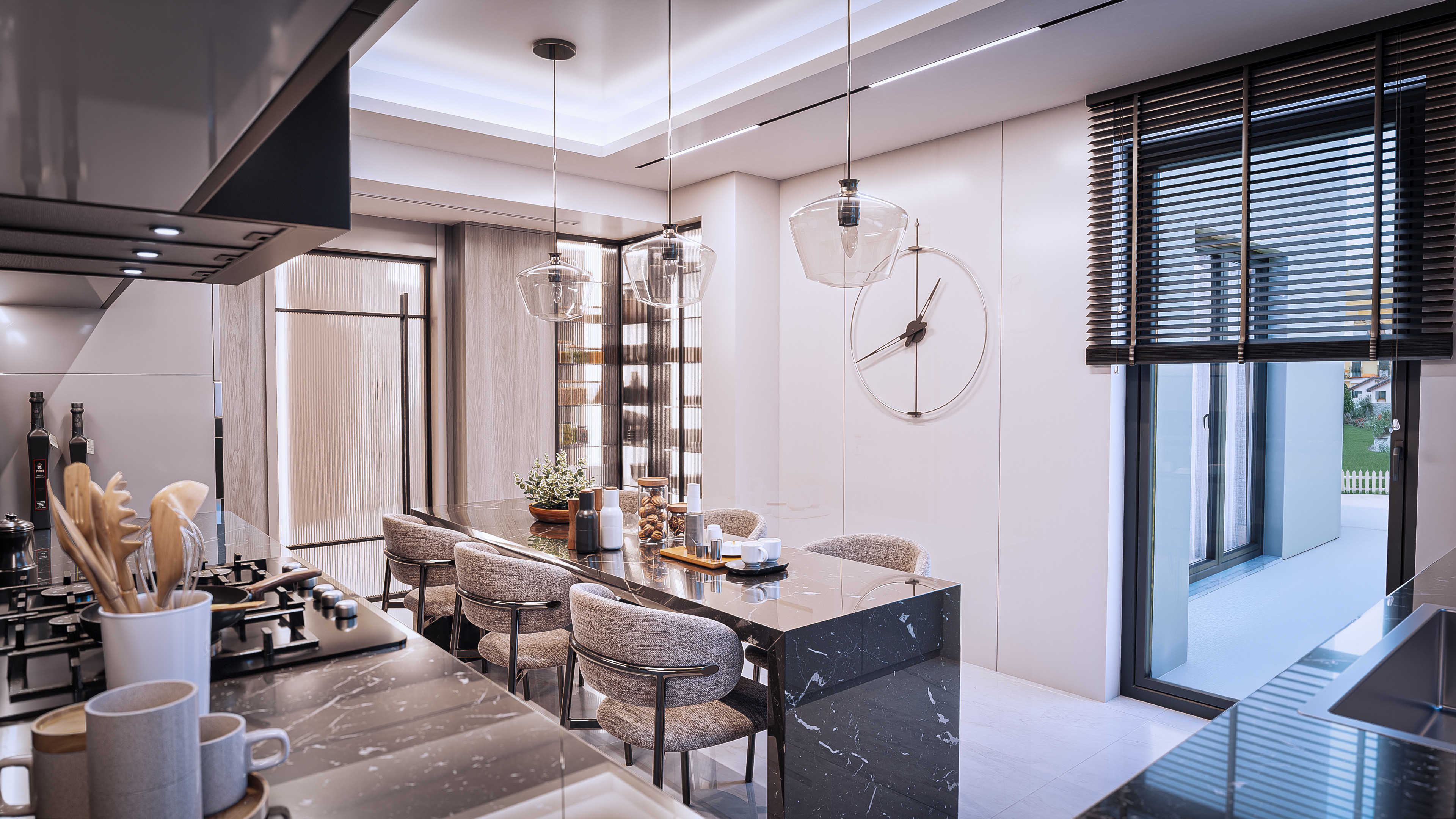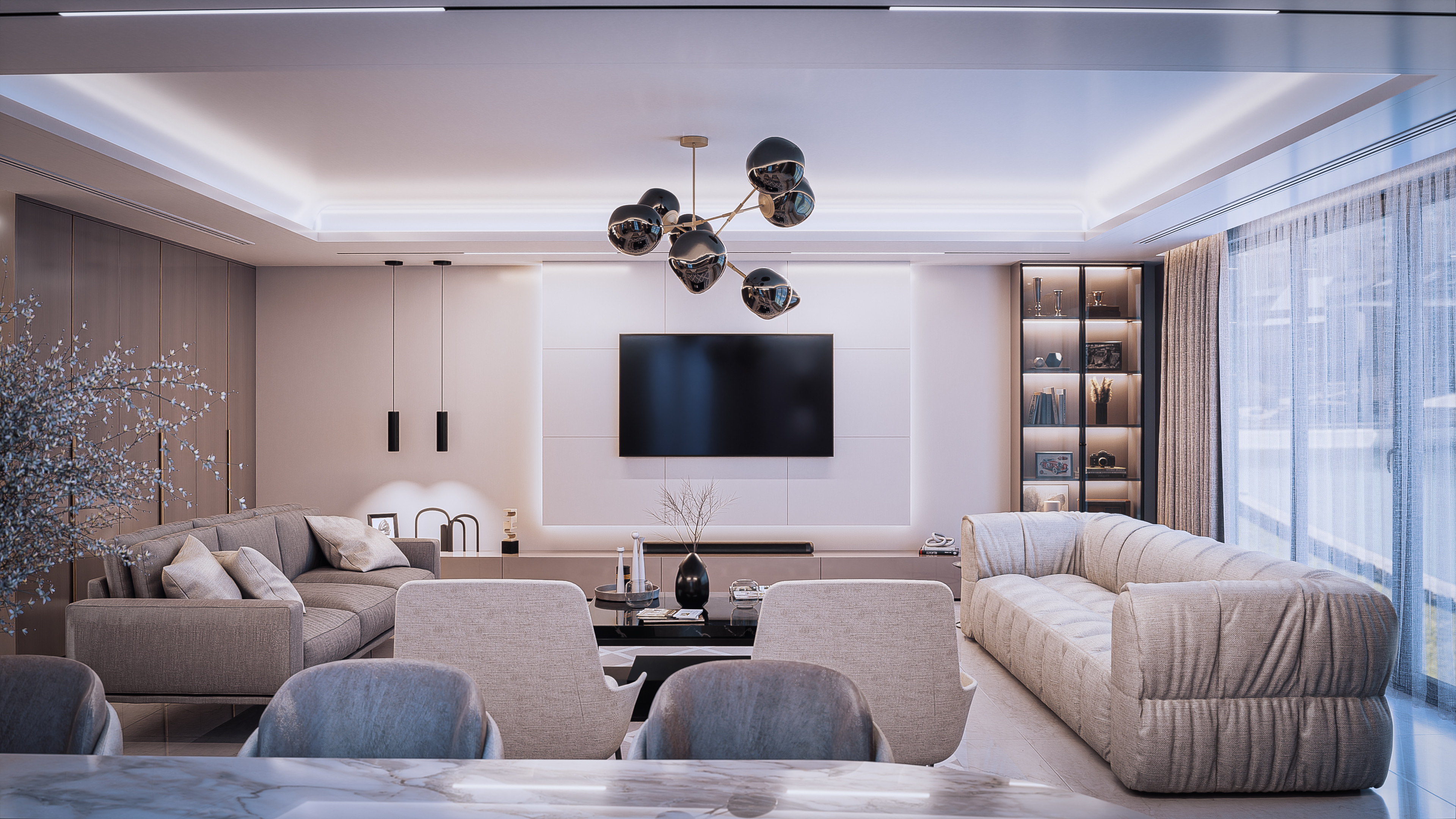 This project was created for the interior design of one of several luxury villas located within a residential complex in Istanbul. I worked on the visualization of all interior spaces, and two additional living room alternatives were also created, which can be found in my portfolio. The project was completed and brought to life this year, with the villa fully constructed based on the final design.