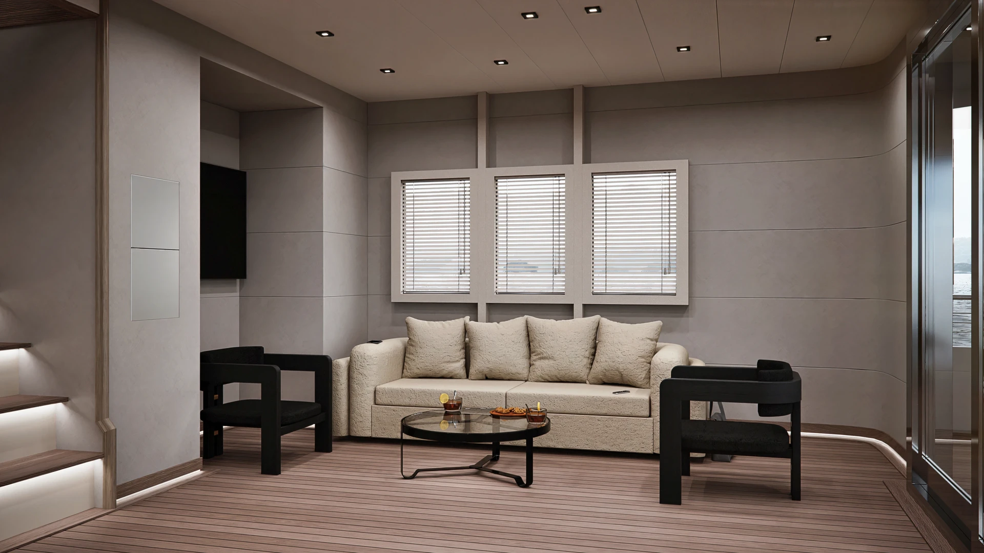 This project features the full interior and deck design of an existing catamaran. It was originally created as a VR experience, allowing users to explore every part of the vessel in real time. For presentation purposes, several path-traced renders were produced. The entire catamaran, including all rooms and details, was fully modeled and designed from scratch.