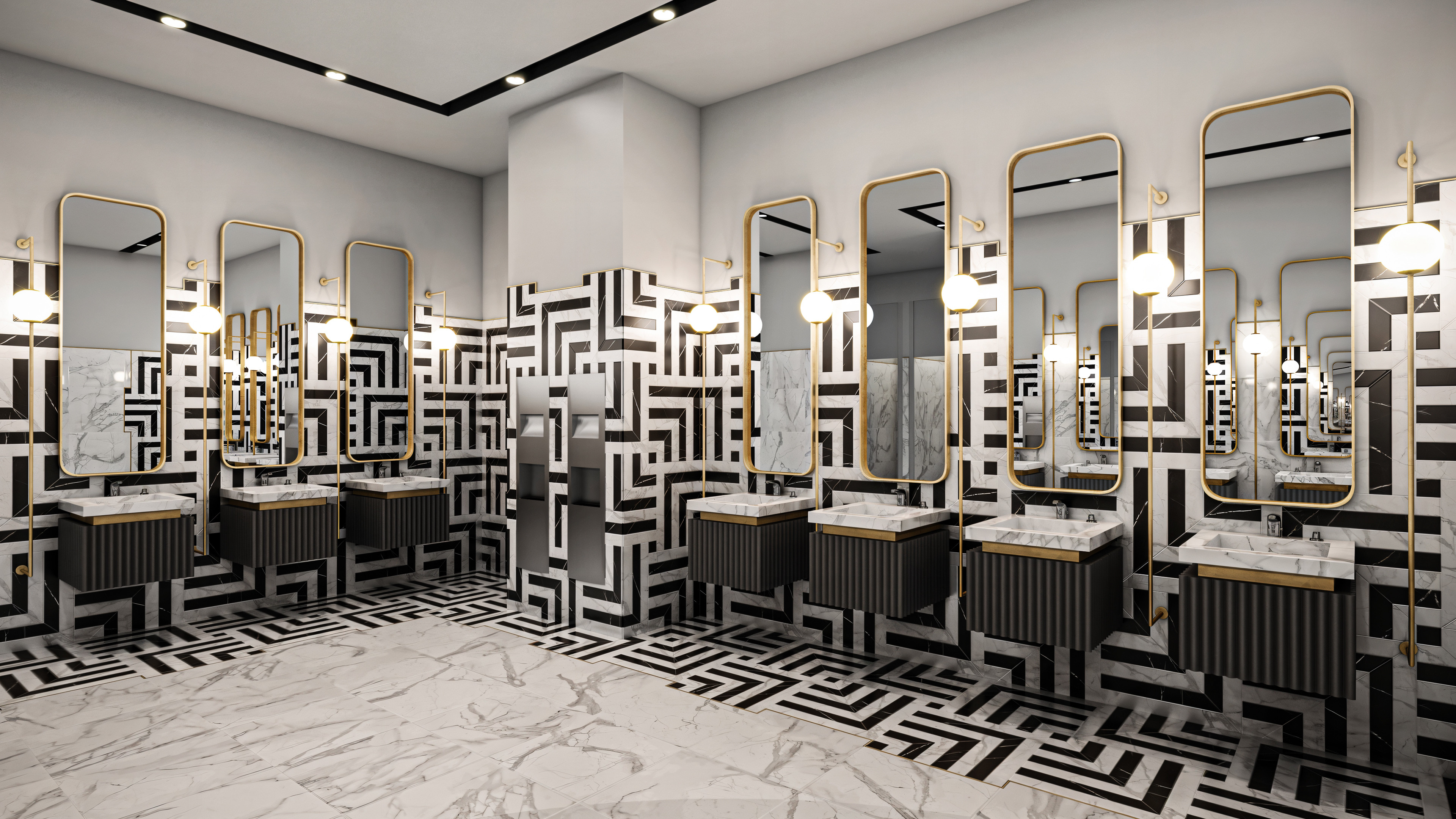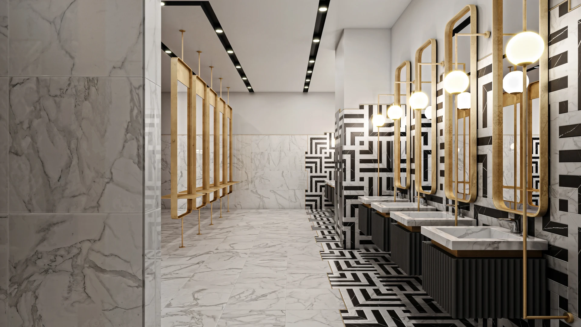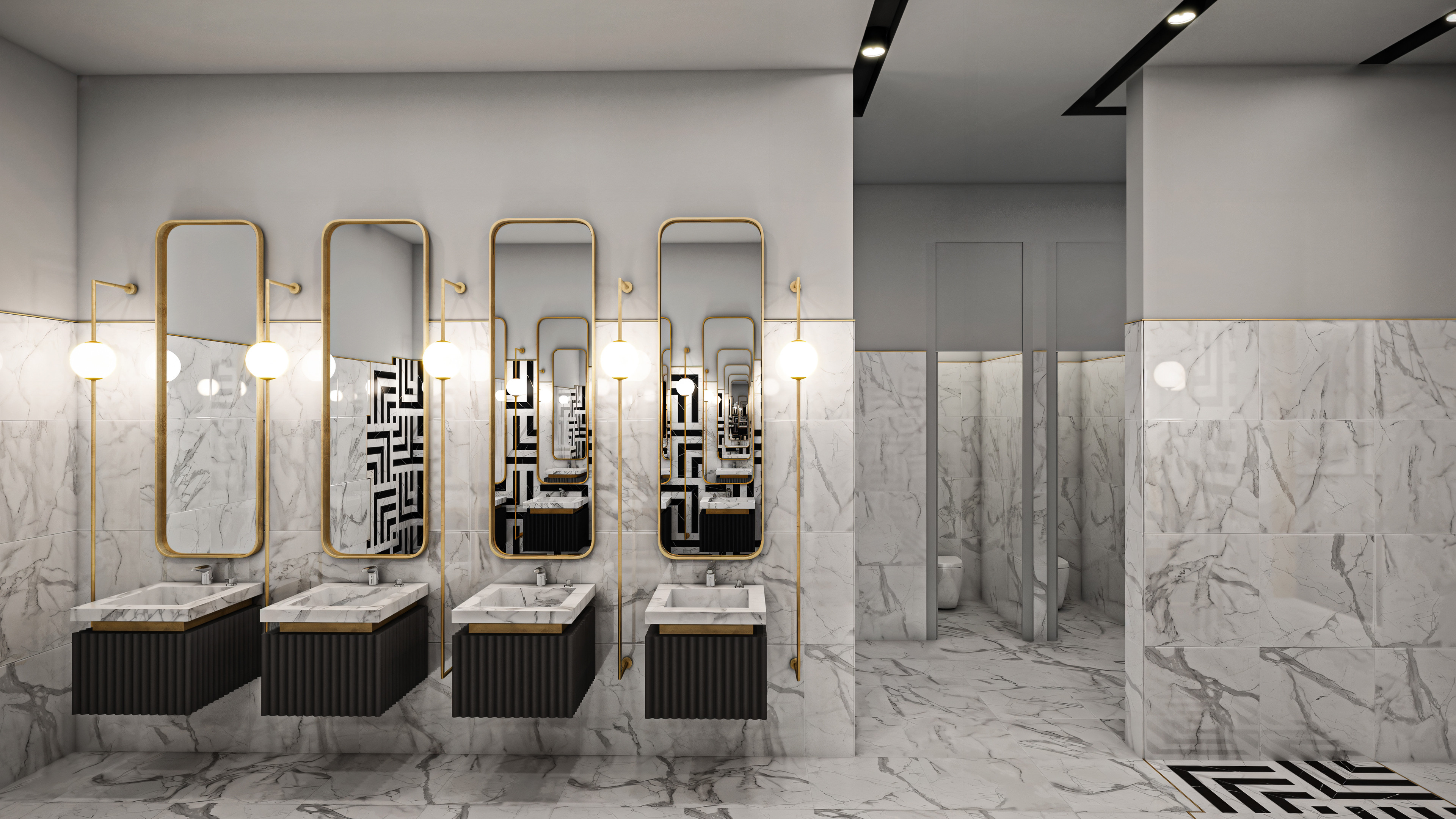 These designs were created for the restrooms of a shopping mall that mainly hosts jewelry stores. The project was completed in 2018 and is one of the few works I rendered with V-Ray. At that time, I was already using Unreal Engine for projects, but without ray tracing, achieving architectural quality lighting through light baking within deadlines was nearly impossible.