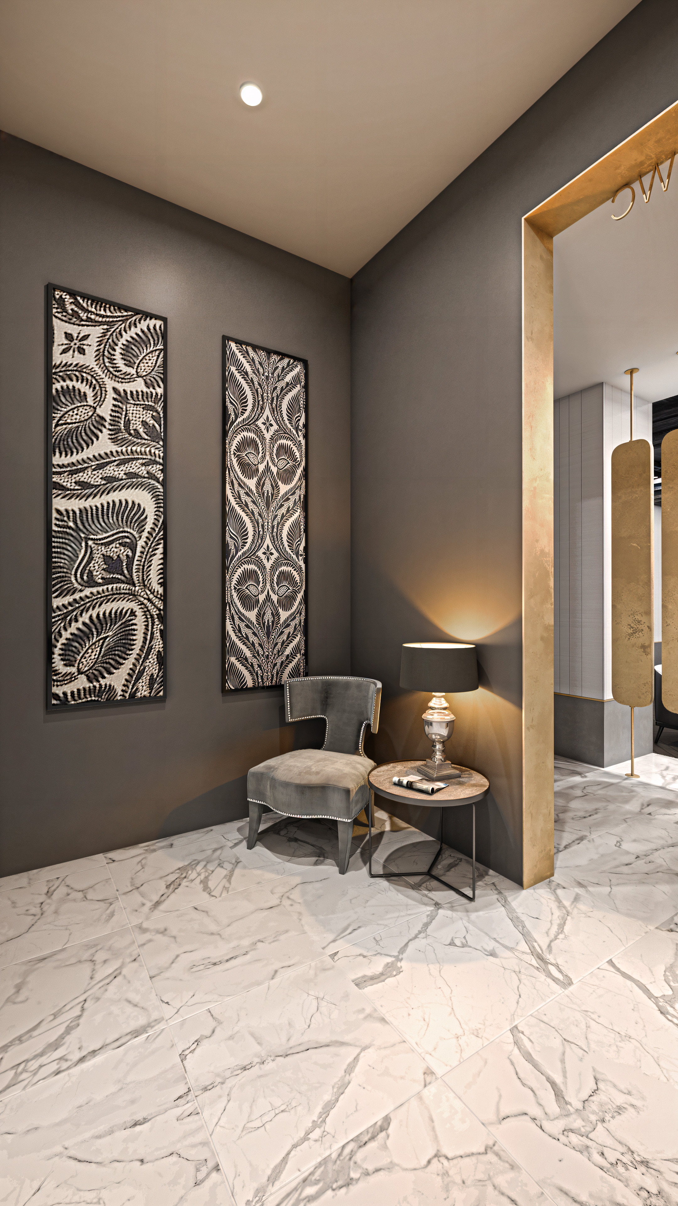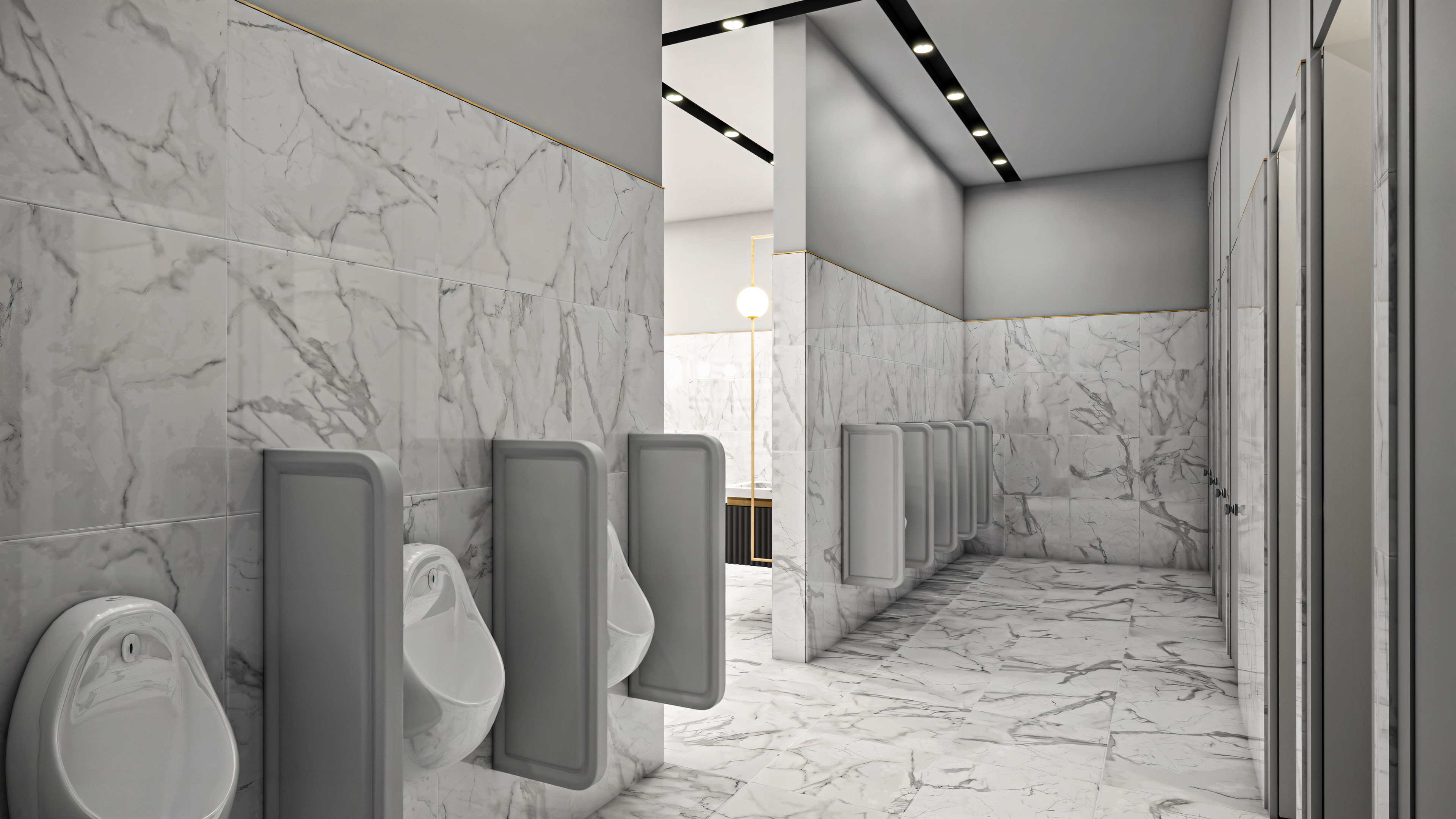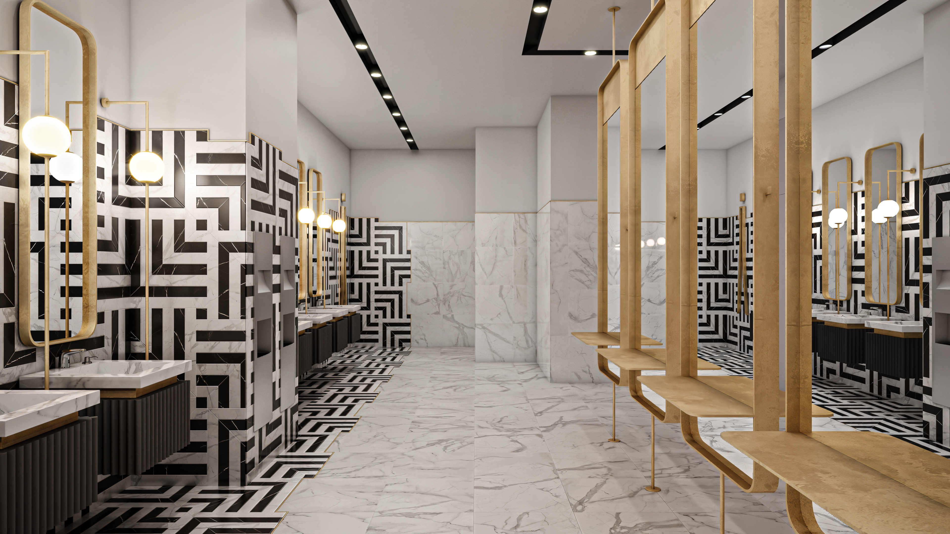These designs were created for the restrooms of a shopping mall that mainly hosts jewelry stores. The project was completed in 2018 and is one of the few works I rendered with V-Ray. At that time, I was already using Unreal Engine for projects, but without ray tracing, achieving architectural quality lighting through light baking within deadlines was nearly impossible.