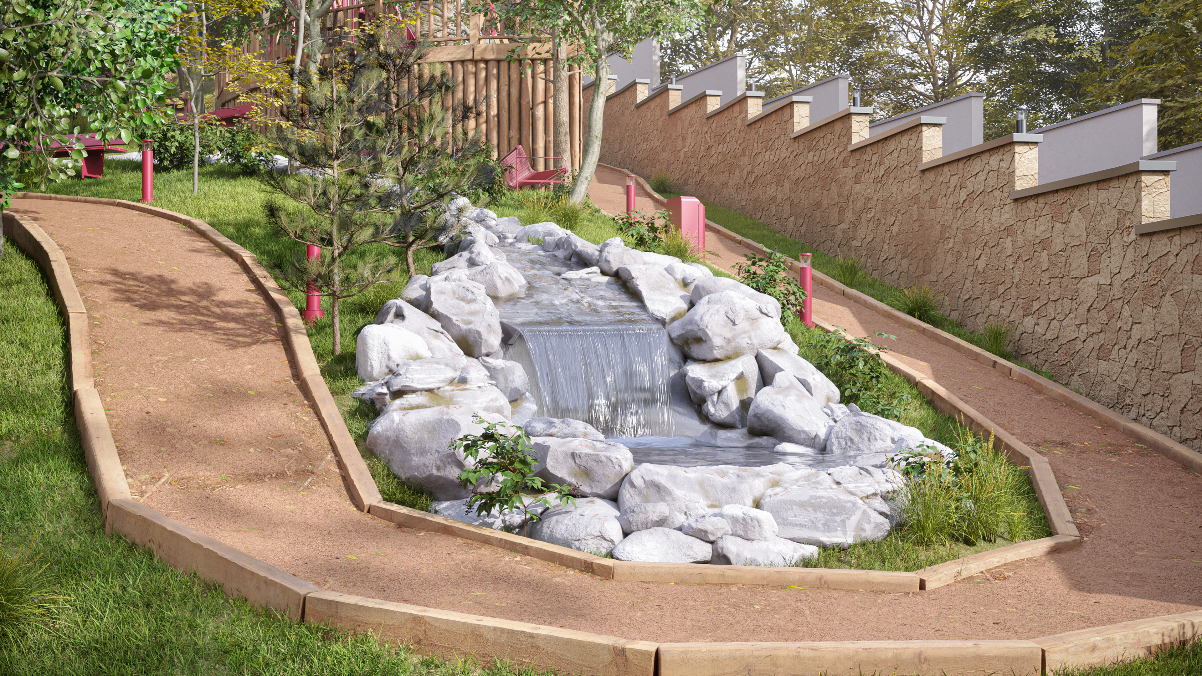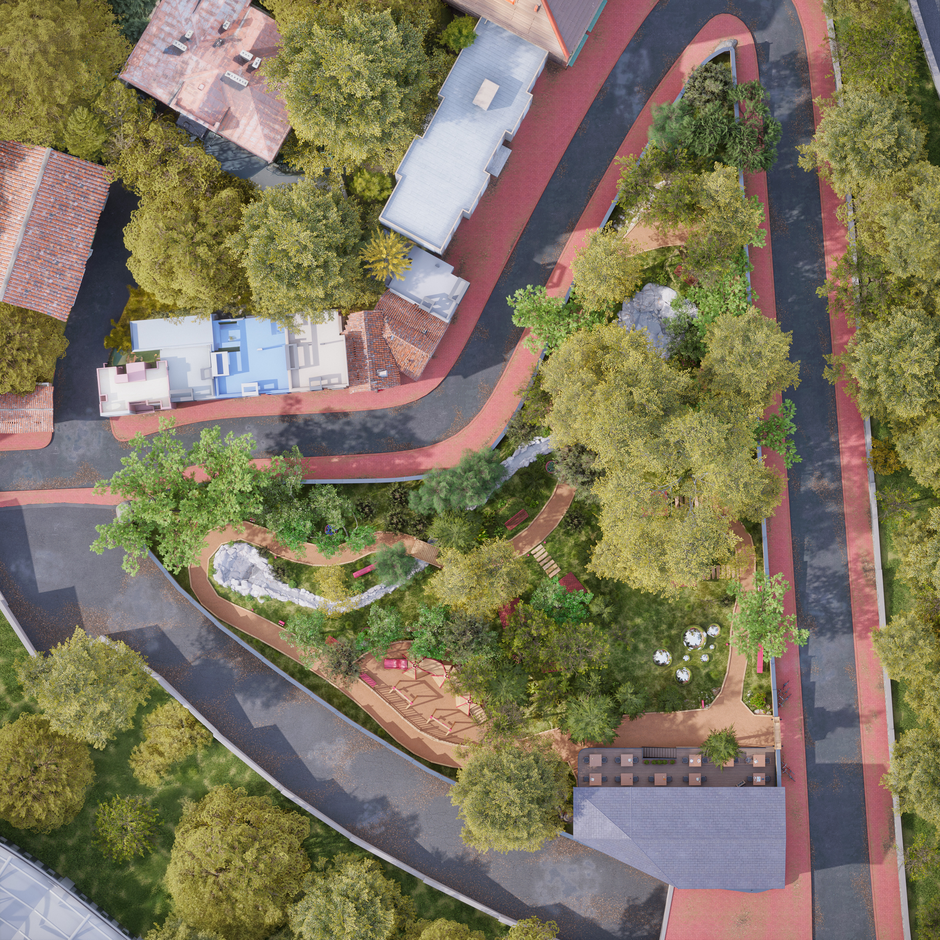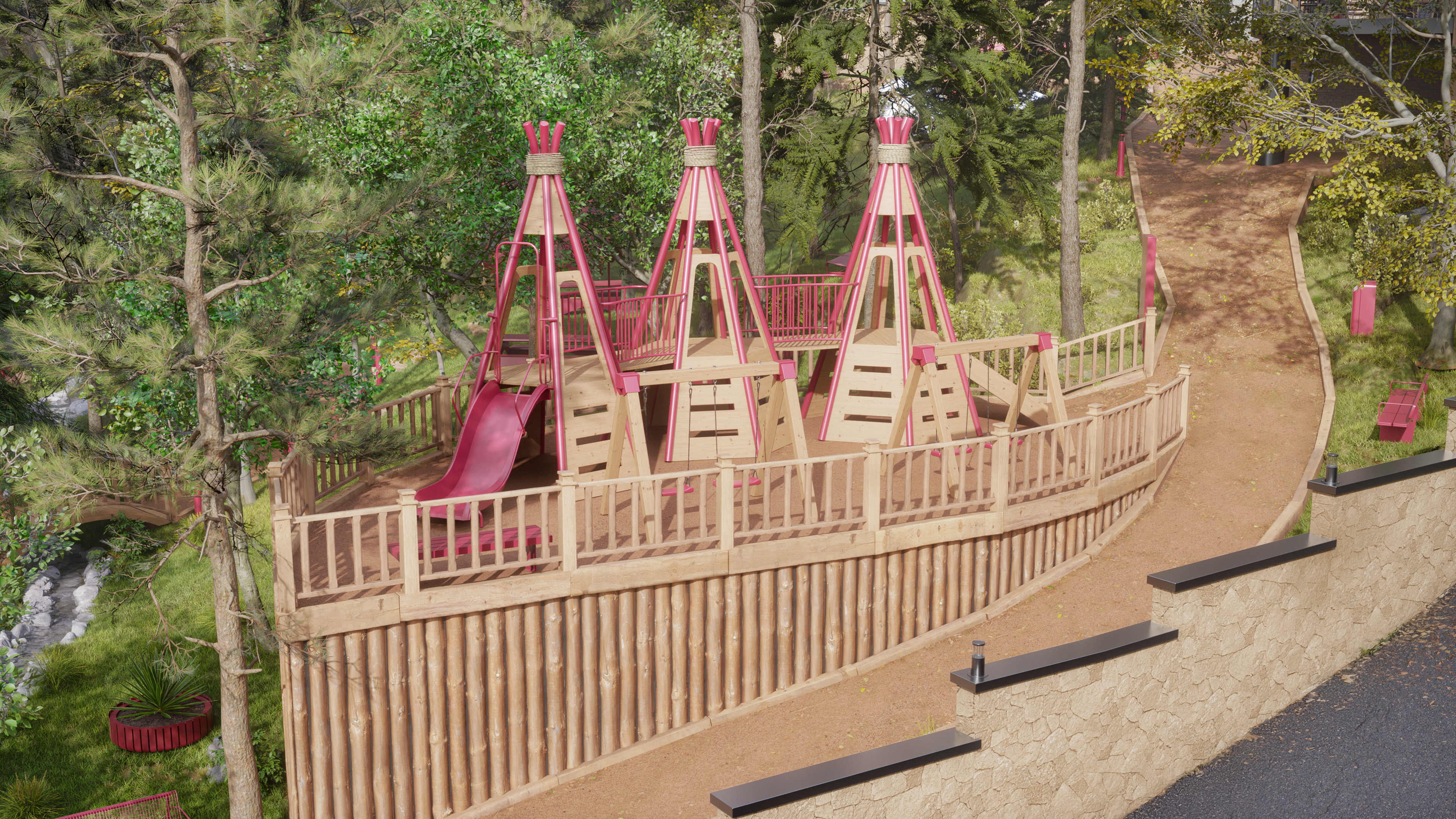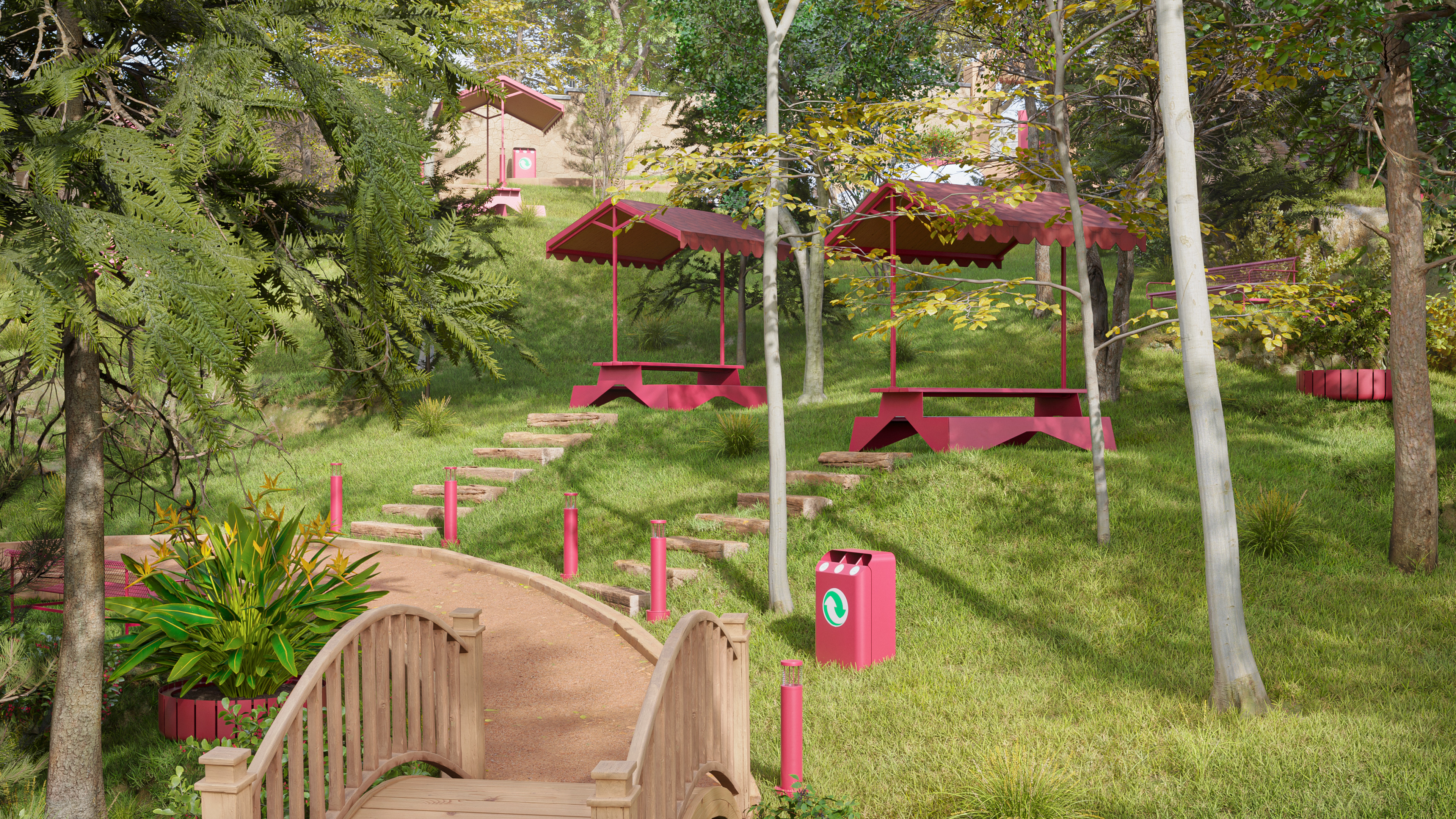 This project was designed to be built within a wooded park in the Beyoğlu district of Istanbul, without harming the natural environment or cutting down any trees. It consists of spaces where people of all ages can enjoy their time including a social facility, library, cafe, a small waterfall, an artificial pond and stream, walking paths, gazebos, picnic areas, a playground, and benches scattered throughout the park.