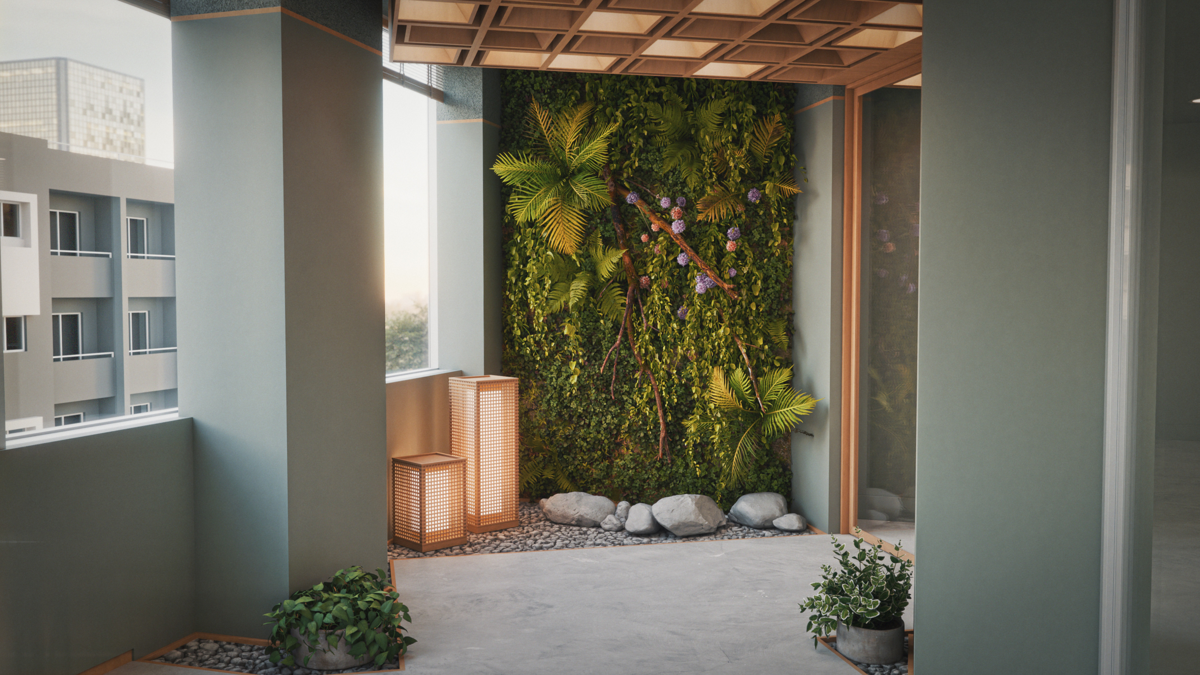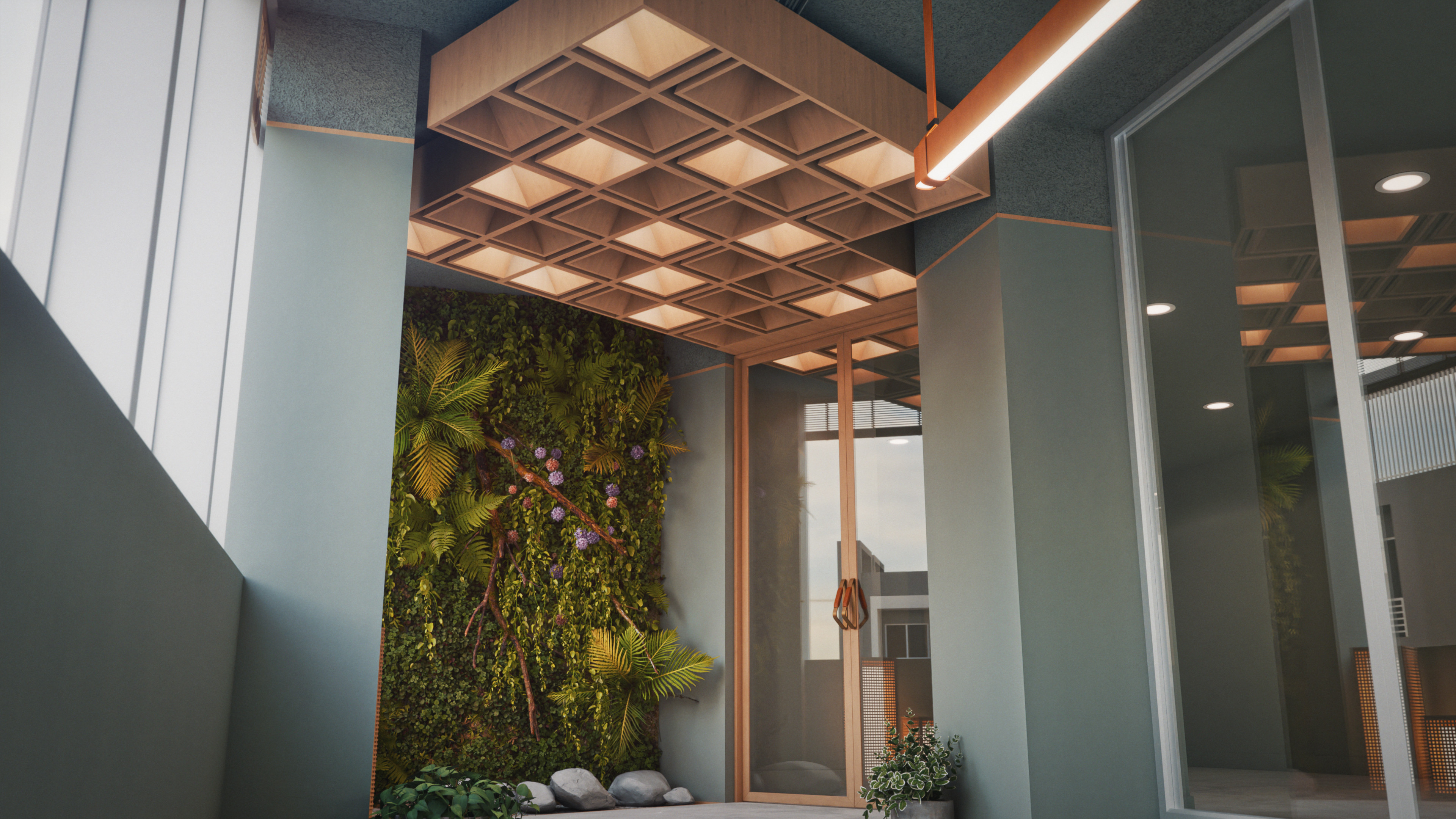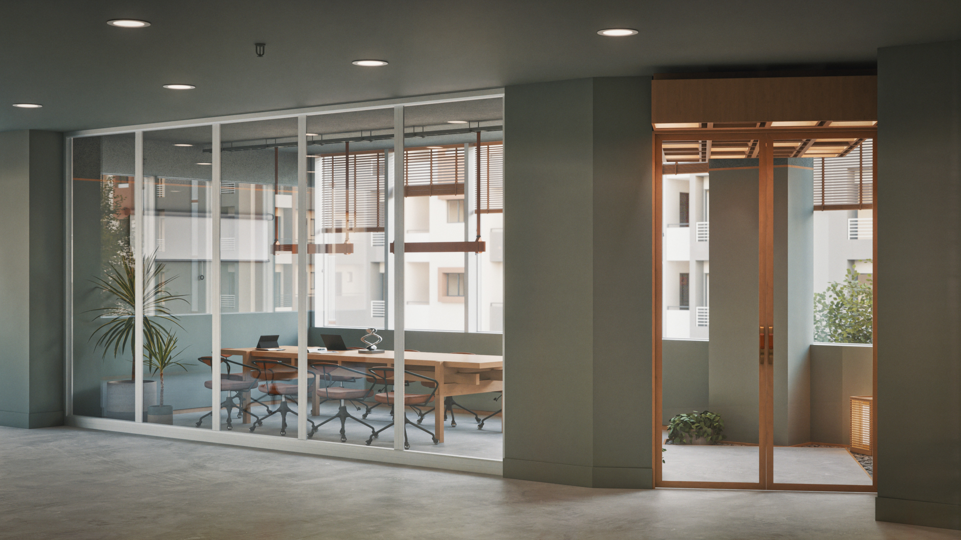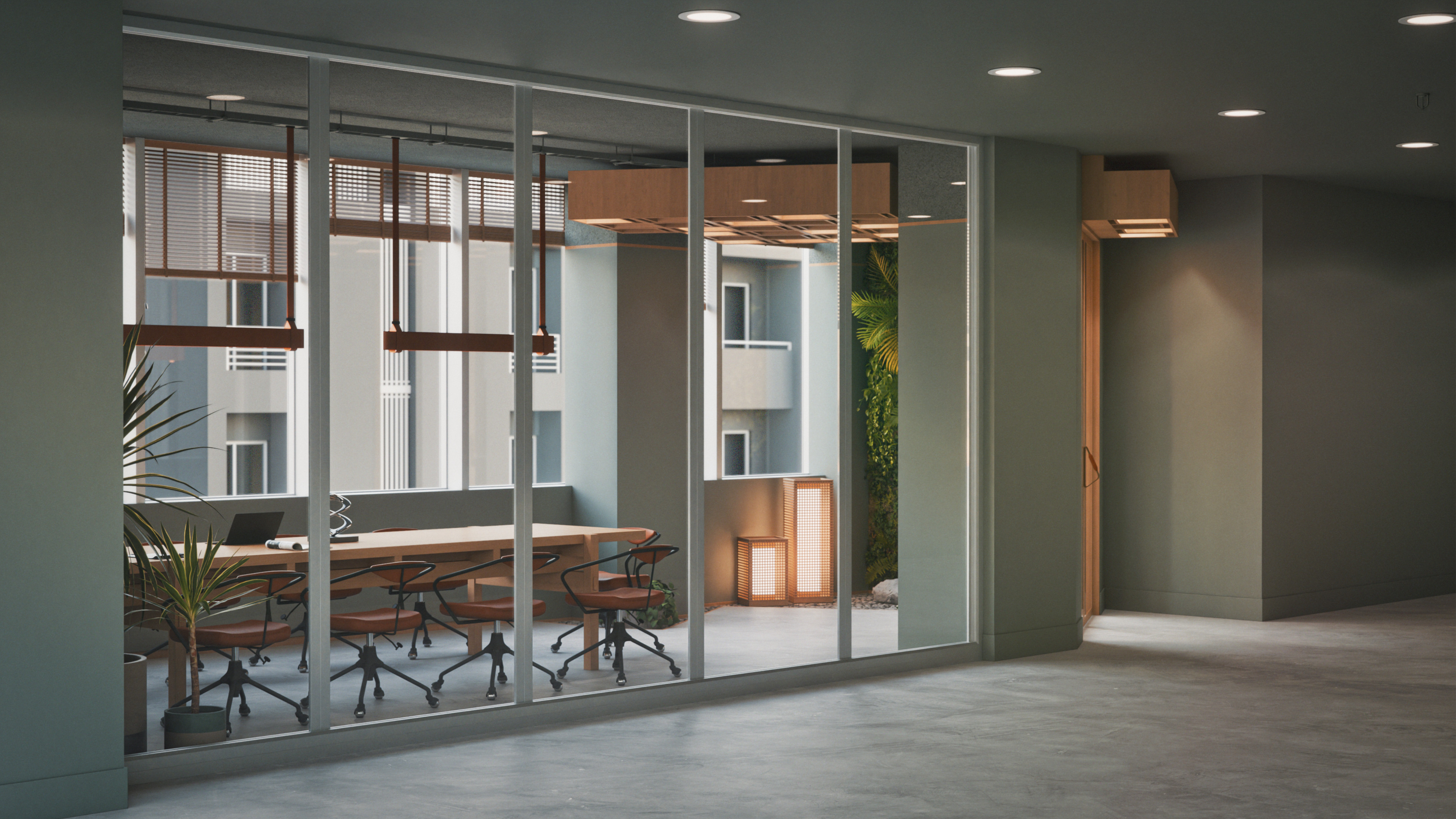 This meeting room was created for a large textile company. It’s tucked away inside a multi-story complex, offering a quiet and private space for important conversations. Soundproof glass keeps the room calm and focused, while the design takes inspiration from nature to bring a softer, more relaxed atmosphere to serious meetings.